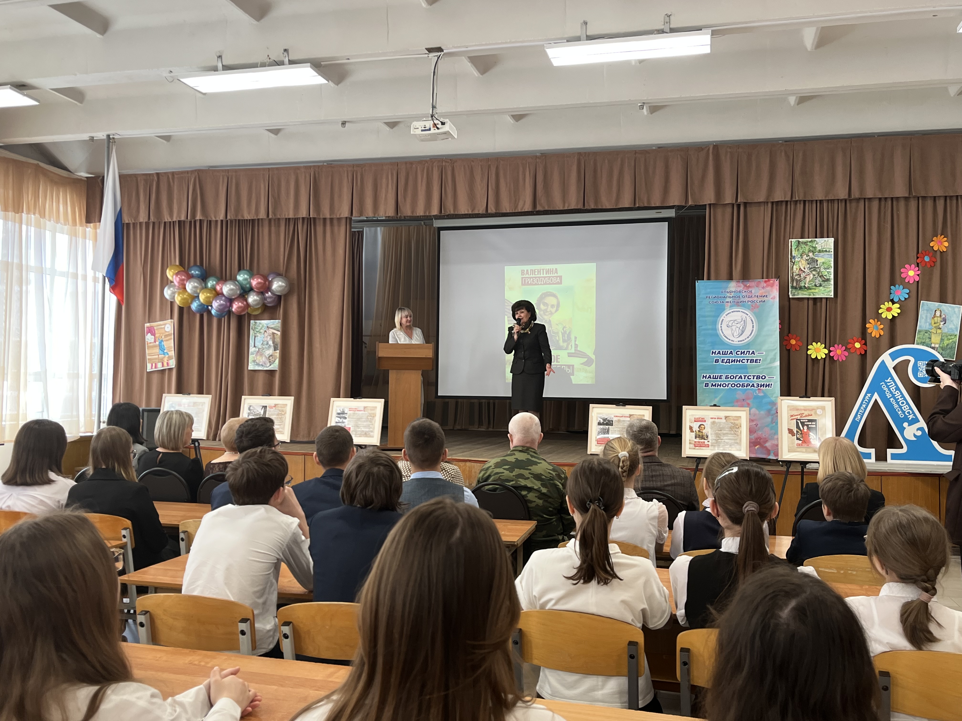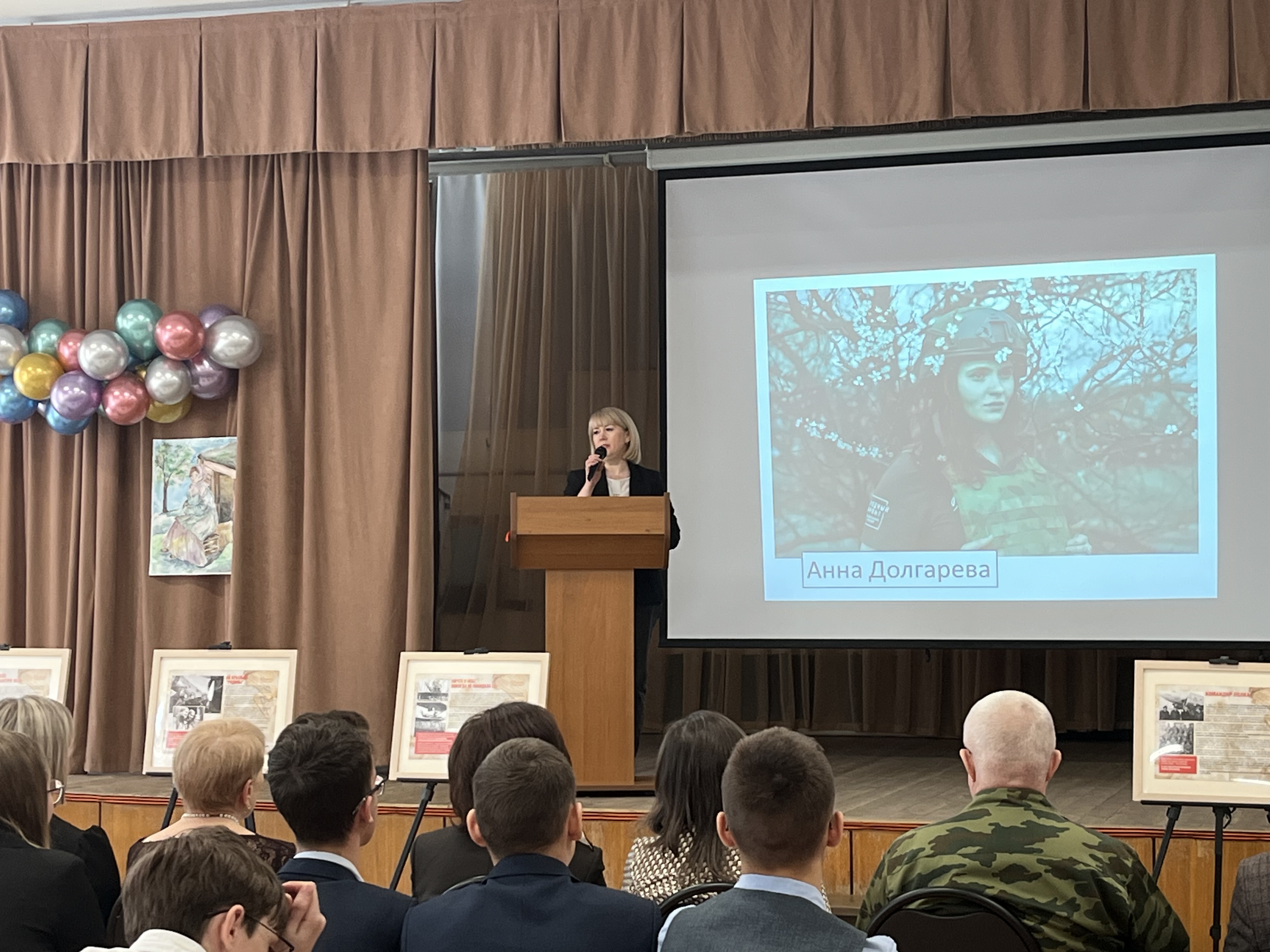 На открытии Чтений ученики лицея № 38 прочитали стихи Юлии Друниной и Ольги Берггольц, а также современных авторов из Донбасса - Анны Ревякиной и Анны Долгаревой.