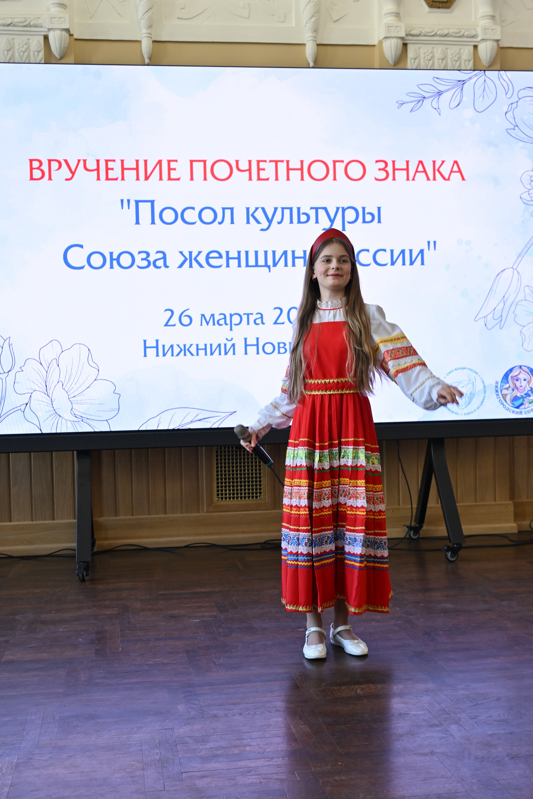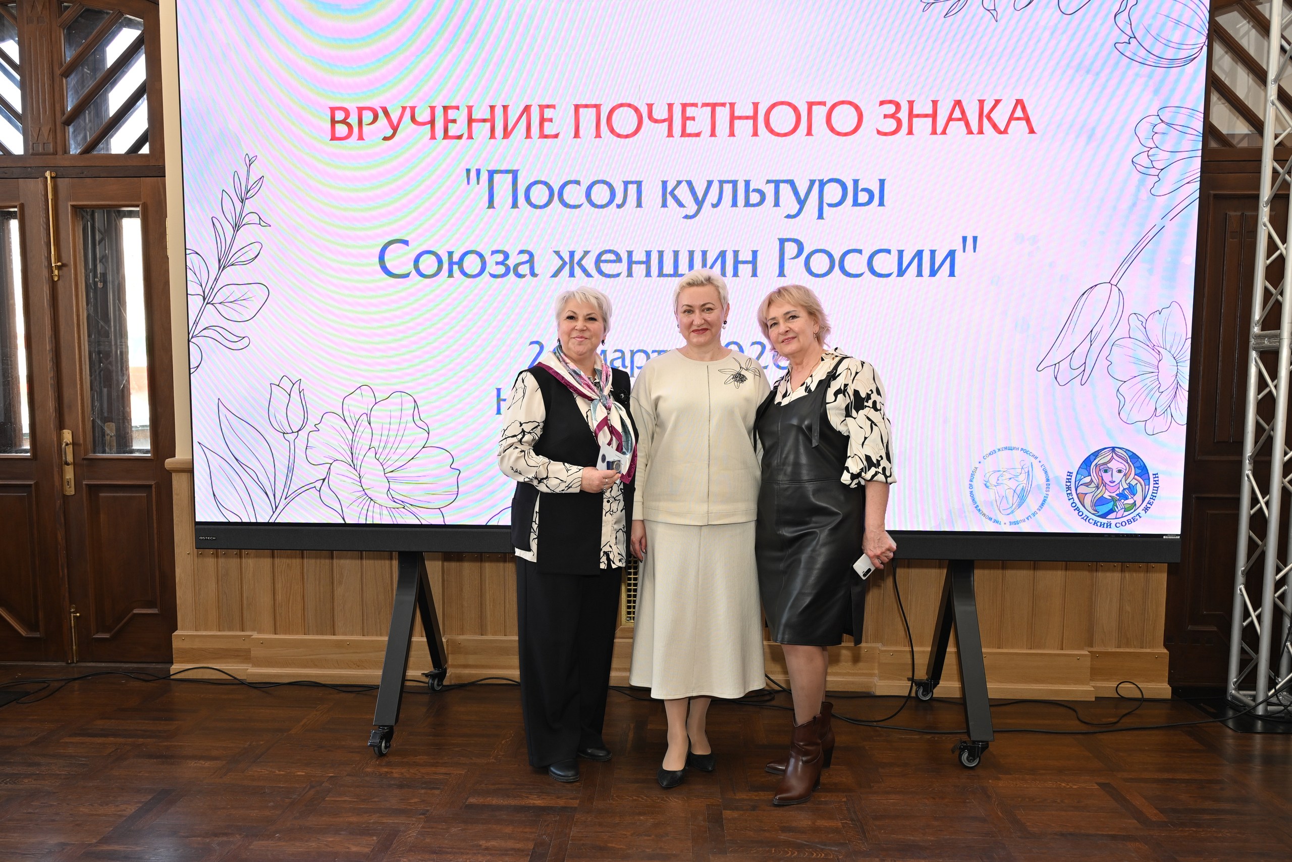 26 марта в Нижнем Новгороде проведено торжественное вручение Почетного знака «Посол культуры Союза женщин России». Церемония прошла во Дворце детского творчества им. В.П. Чкалова.