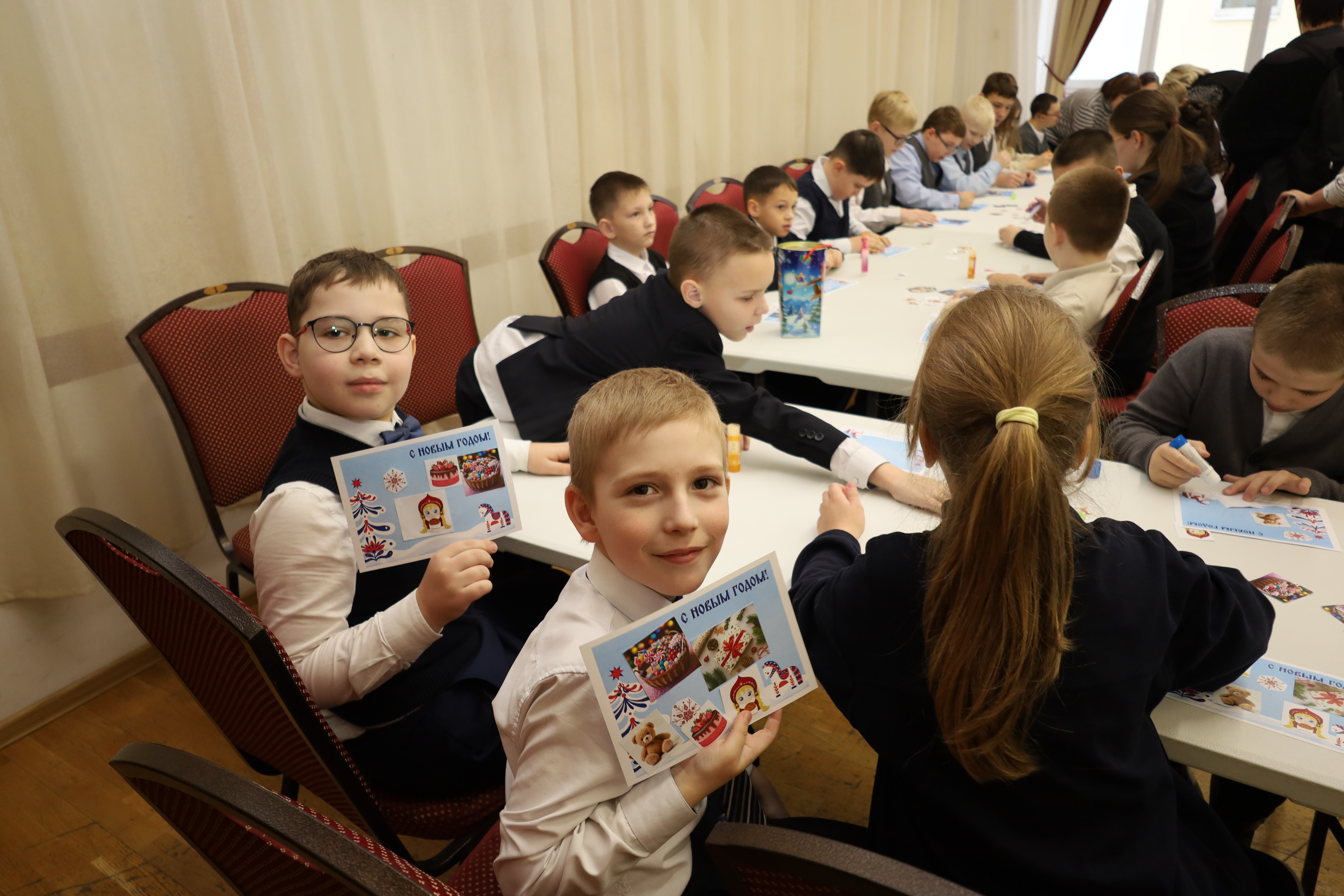 Завершился фестиваль вручением подарков и общей фотосессией, а затем участников пригласили на коллажную встречу «Поёт зима, аукает», где дети своими руками создавали новогодние открытки.