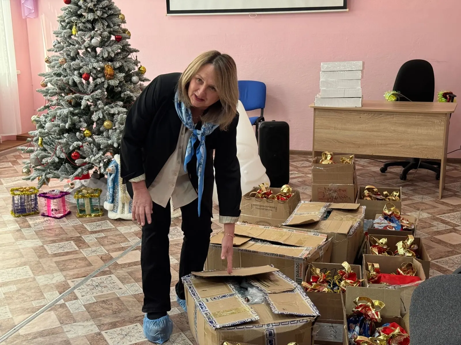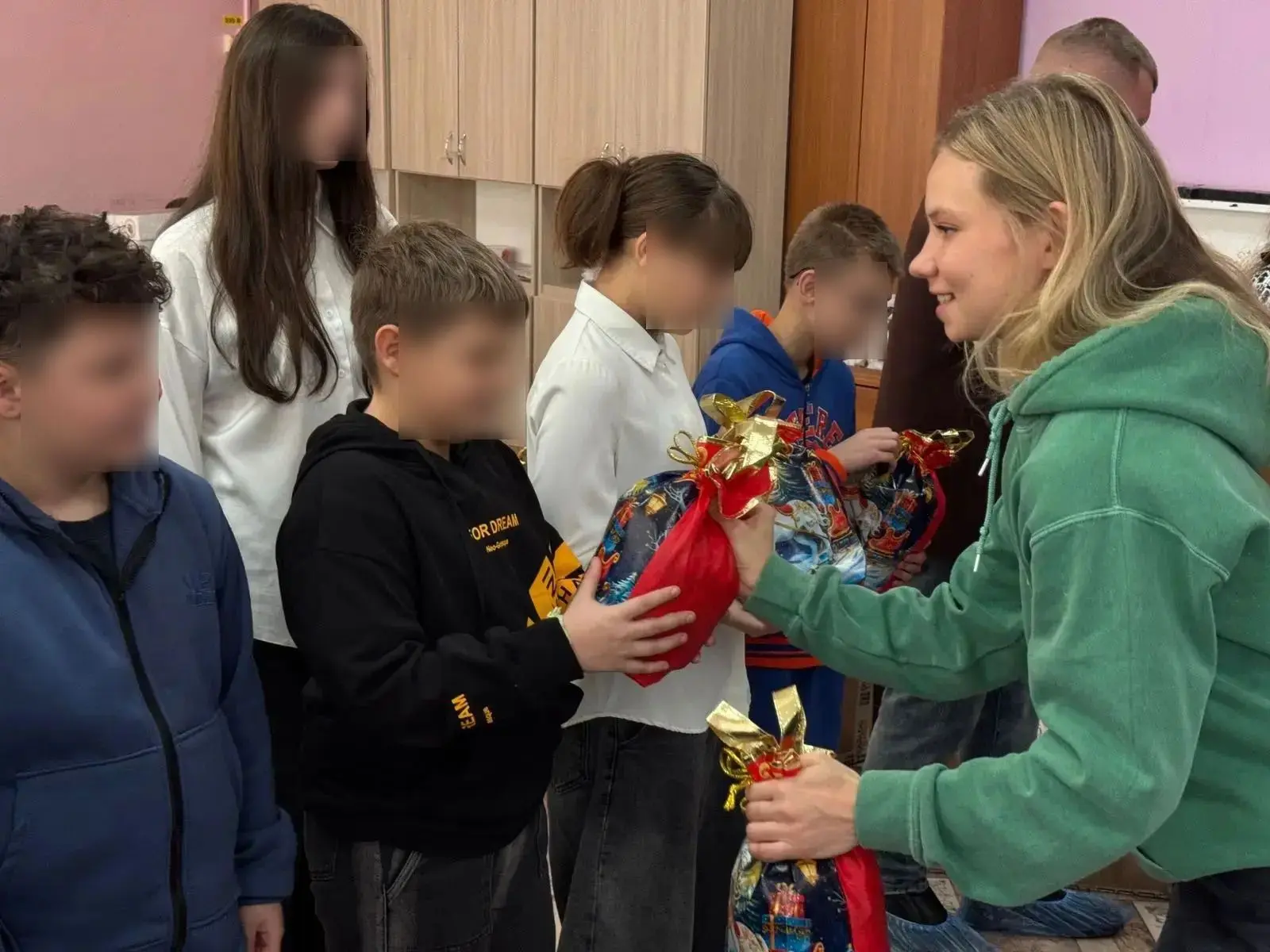 Вместе с новогодними гостинцами союзницы передали учреждению текстиль и белье для взрослых и детей.