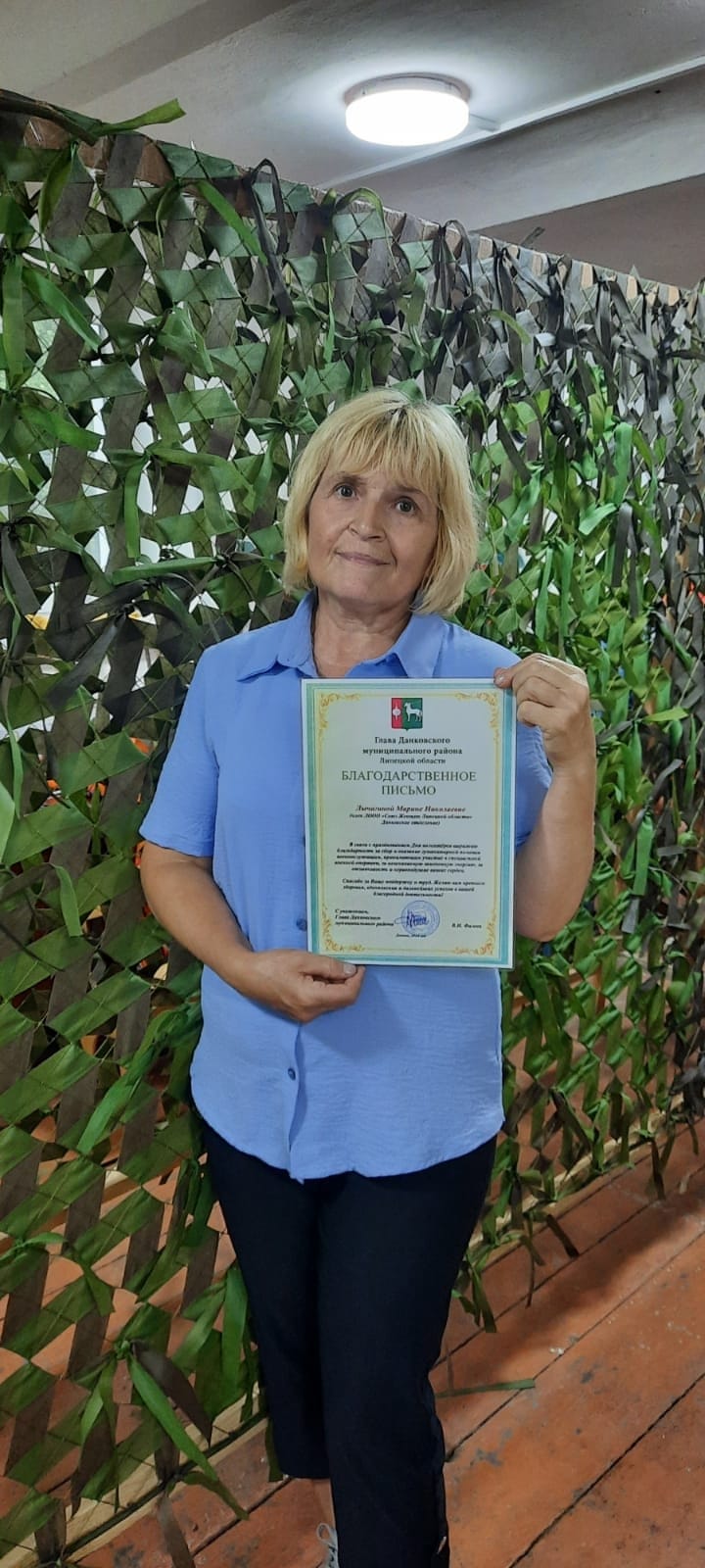 С февраля 2022 года в плотном графике руководителя образовательного учреждения села Теплое появилось чрезвычайно дело – плести маскировочные сети для фронта.