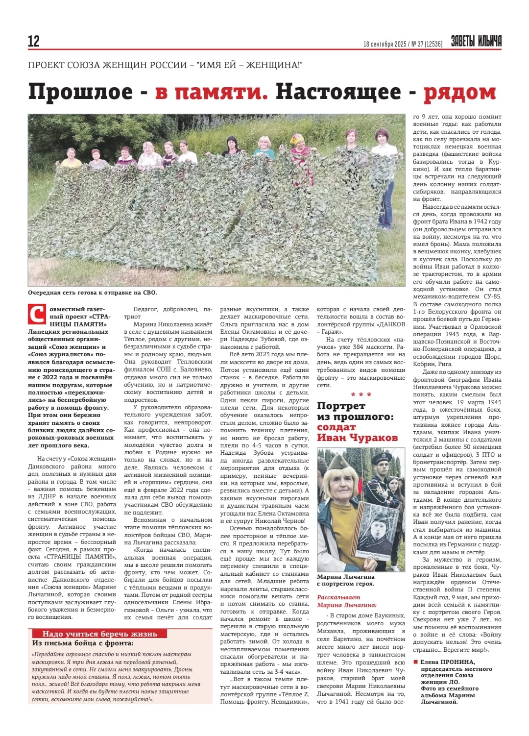В его рамках 18 сентября в газете «Заветы Ильича» вышла статья «Прошлое в памяти. Настоящее рядом» о волонтере Марине Николаевне Лычагиной.