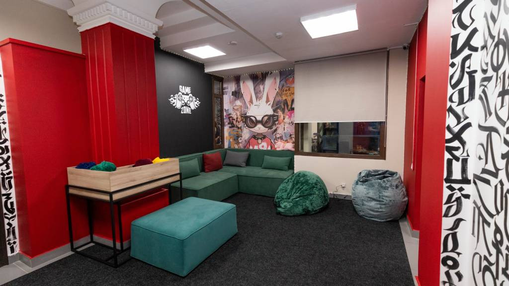 «ПАРК» выполнен в современном дизайне. Организовано несколько тематических зон: территория отдыха, территория просвещения и творчества, кухня, где можно выпить чай, разогреть обед и приготовить несложные блюда. Зал для свободной деятельности, общения и настольных игр. Комната творчества и событий, в которой проходят мастер-классы, групповые занятия, встречи и праздники. Также созданы два уютных пространства для индивидуальных консультаций и занятий с подростковым психологом в дружеской, неформальной обстановке.