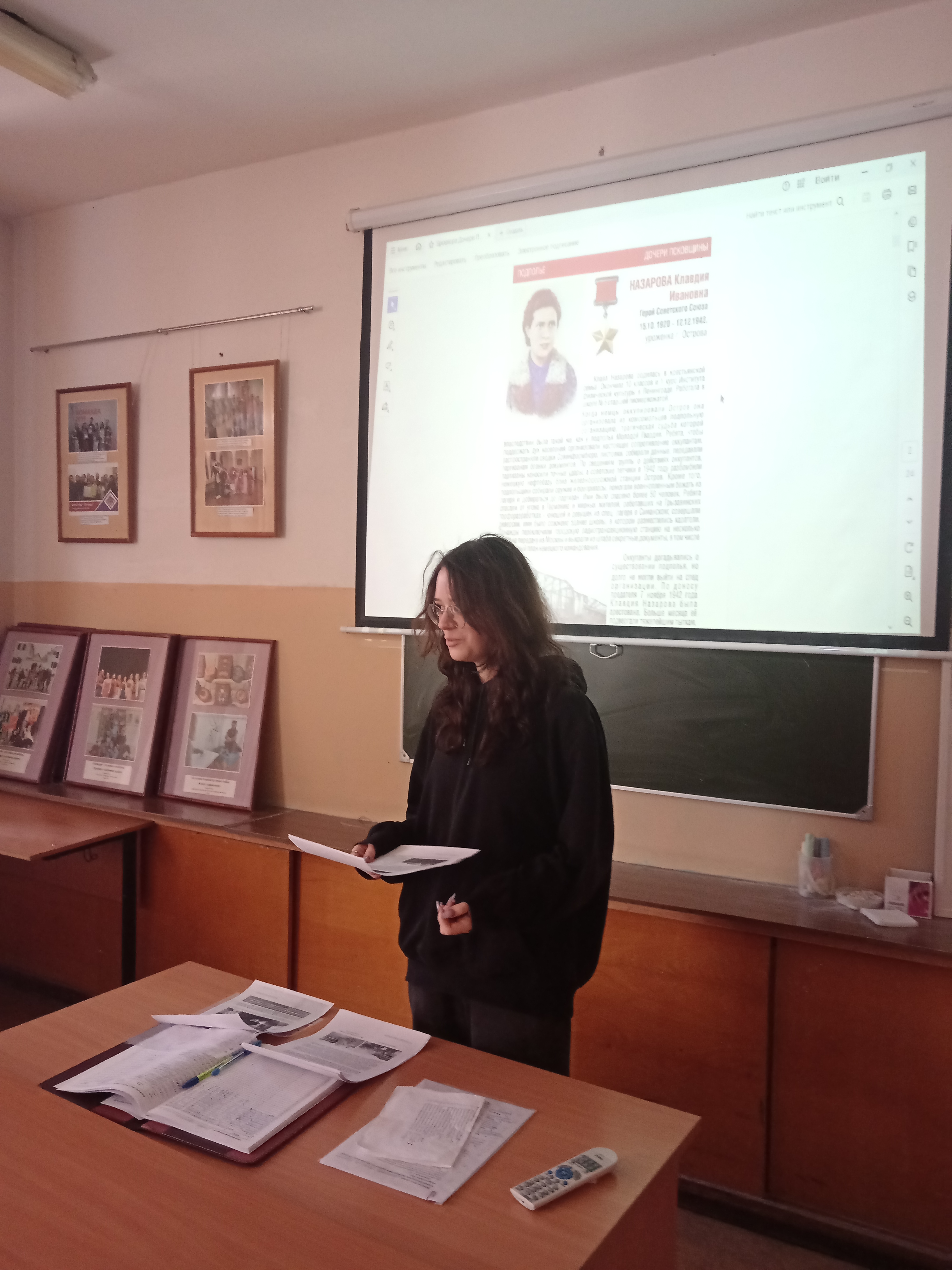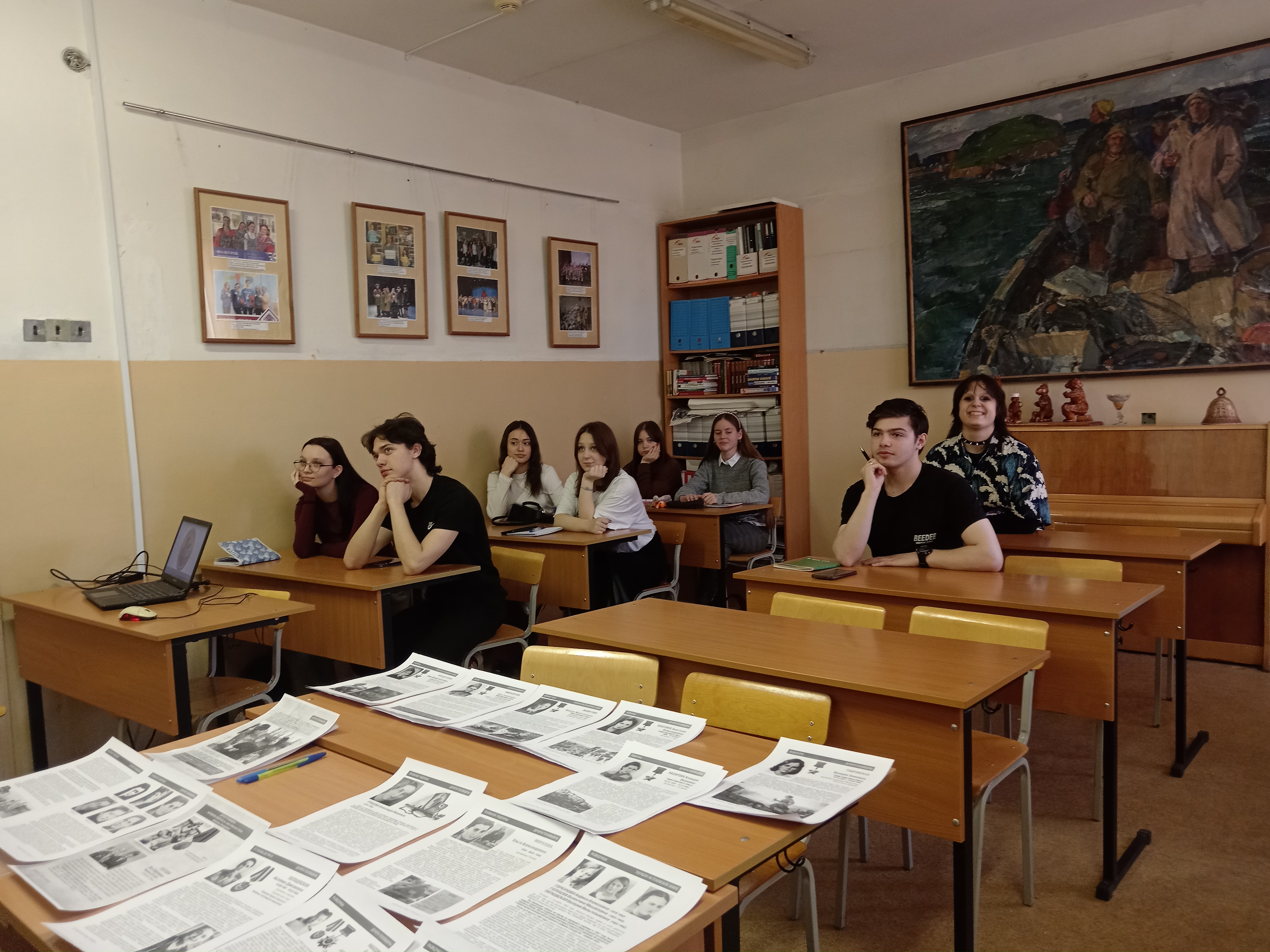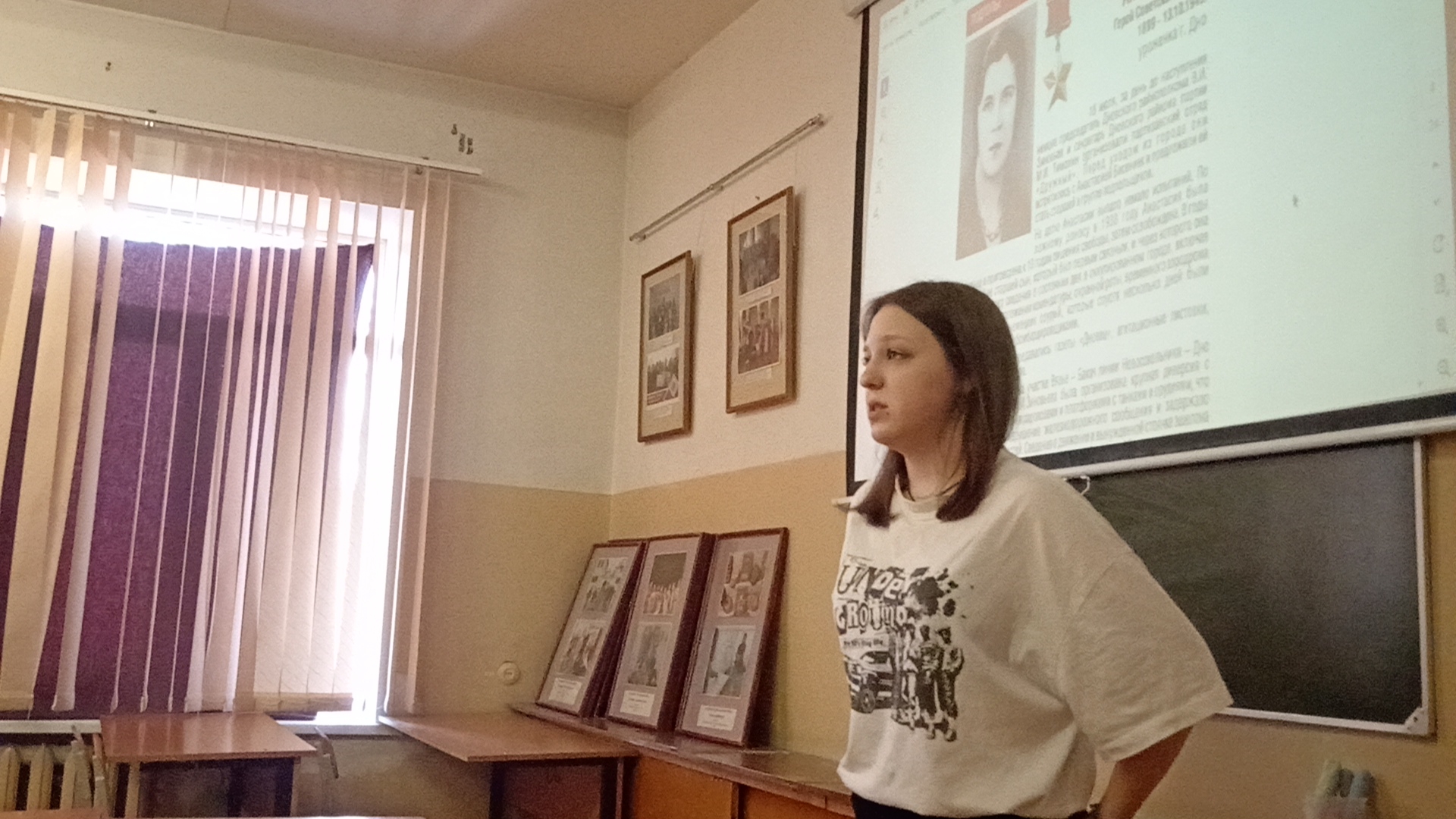 Она рассказала, что по инициативе преподавателя, Посла культуры СЖР Снежаны Власовой в Псковском колледже искусств им. Римского-Корсакова в рамках года 85-летия Антифашистского комитета советских женщин организованы пять уроков мужества.