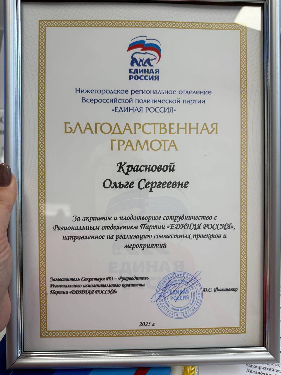 Деятельность организации также отмечена в 2025 году региональным отделением Партии «Единая Россия».