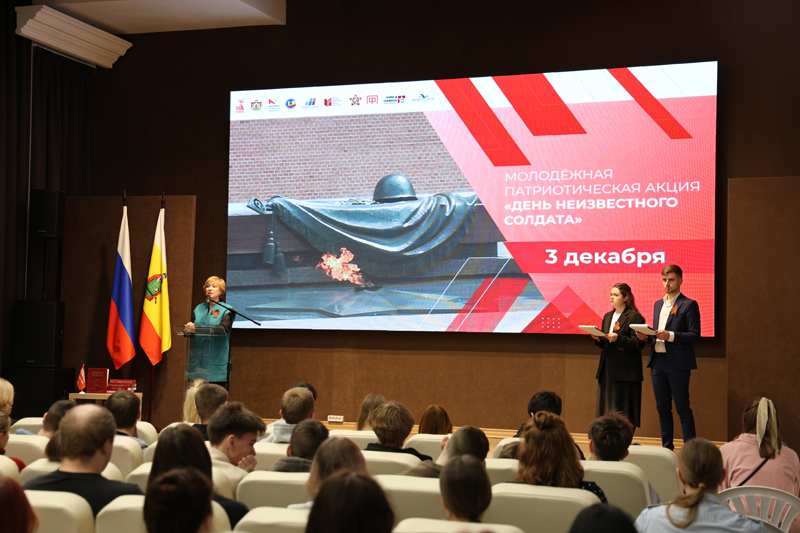 В День Неизвестного солдата около двухсот студентов и школьников собрались в Рязанской областной библиотеке им. Горького, чтобы почтить память тех солдат, чьих имен мы не знаем, но подвиг которых бессмертен.