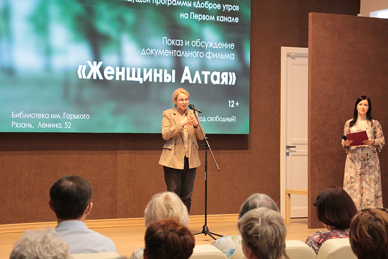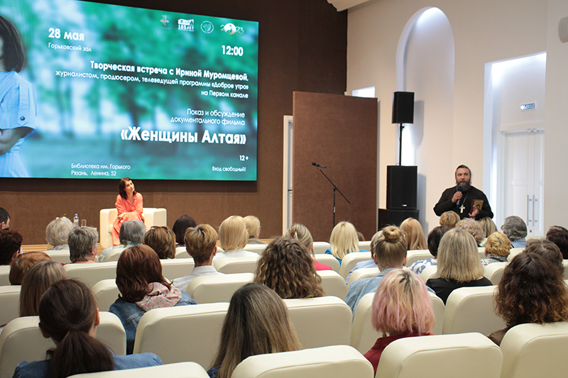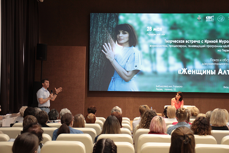 Одним из ярких событий уходящей весны стала творческая встреча рязанцев с журналистом, продюсером и телеведущей программы «Доброе утро» на Первом канале Ириной Муромцевой. 28 мая в Рязанской областной библиотеке имени Горького состоялся показ и обсуждение документального фильма «Женщины Алтая».