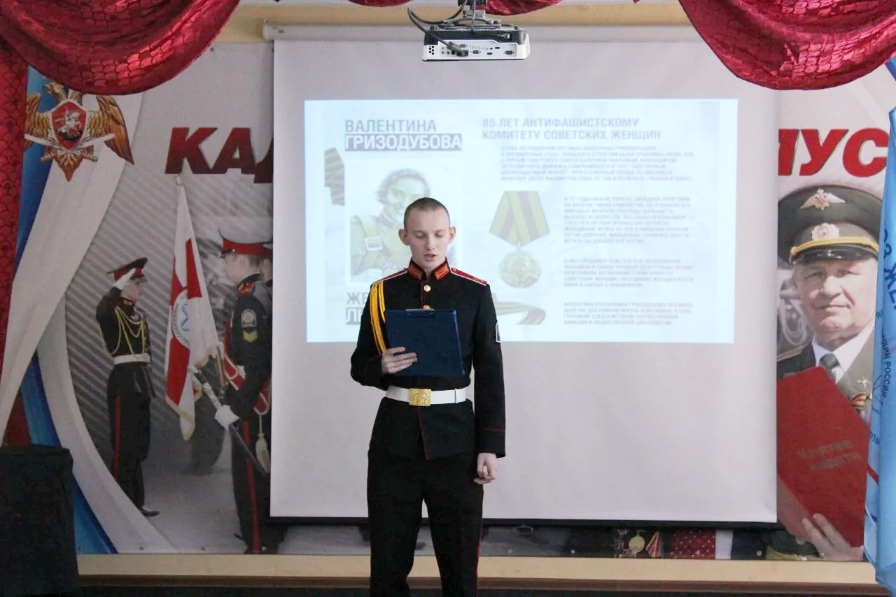 26 февраля в Северском кадетском корпусе (СКК) состоялось патриотическое мероприятие, которое дало старт циклу "Гризодубовские чтения", посвященному 85-летию создания Антифашистского комитета советских женщин.