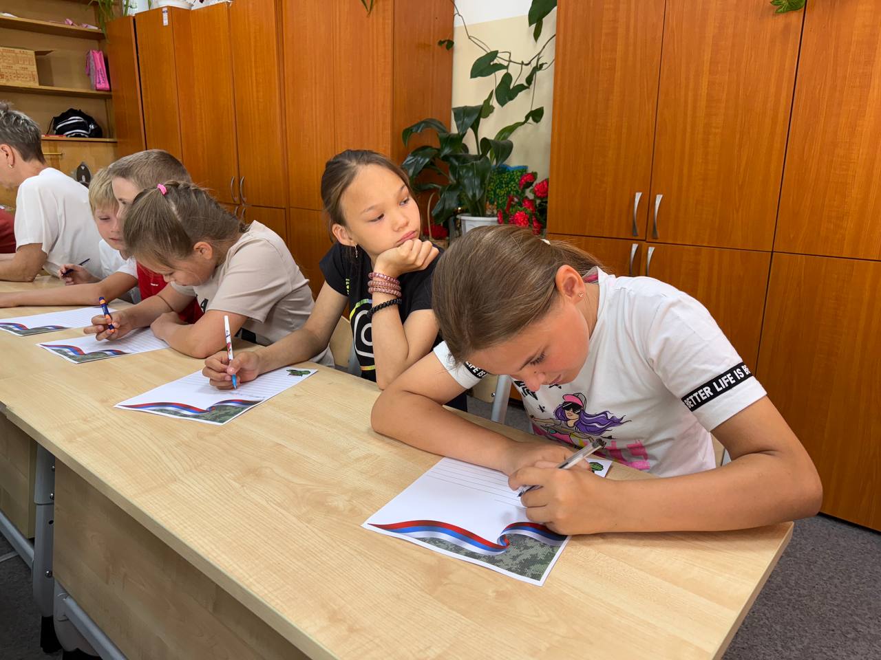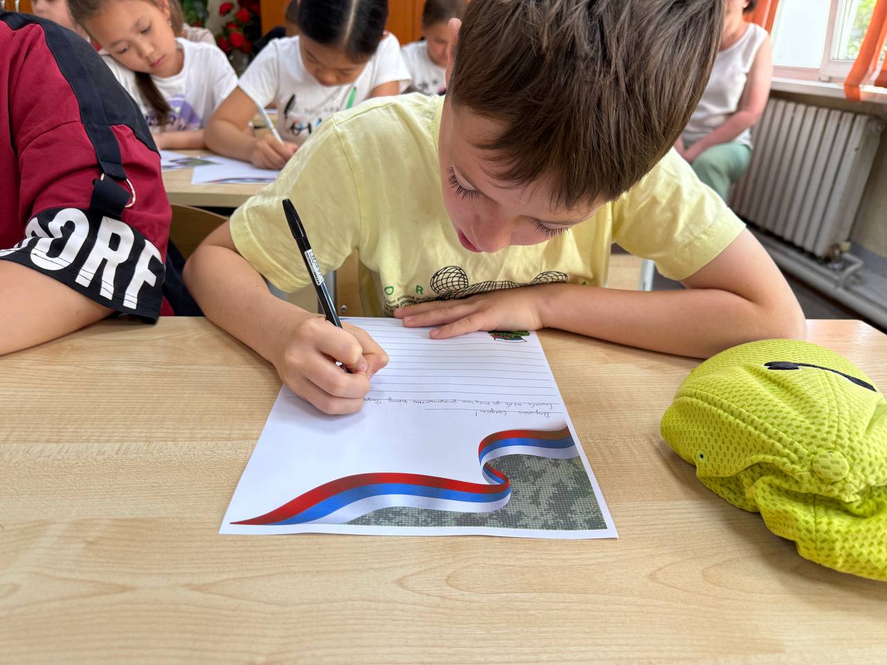 Кульминацией встречи стал момент, когда школьники взялись за ручки и карандаши, чтобы написать письма и нарисовать рисунки для наших защитников. В каждом послании — частичка детской души, искренние слова поддержки, пожелания здоровья и скорейшего возвращения домой. Яркие рисунки с солнцем, цветами и мирным небом, теплые строчки - все это скоро отправится на передовую, чтобы согреть сердца бойцов и напомнить им о том, что дома их любят и ждут.