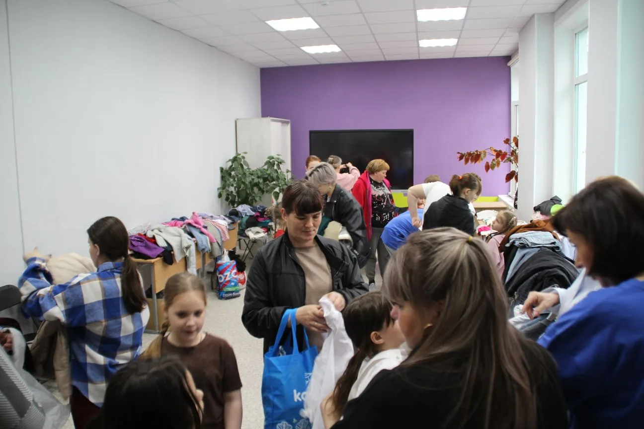 Программа акции, кроме занятий с детьми, включала в себя несколько площадок, на одной из них - шоу-руме - женщины и дети выбирали бесплатную одежду для себя и своей семьи: теплые вещи, школьную форму, обувь, игрушки.