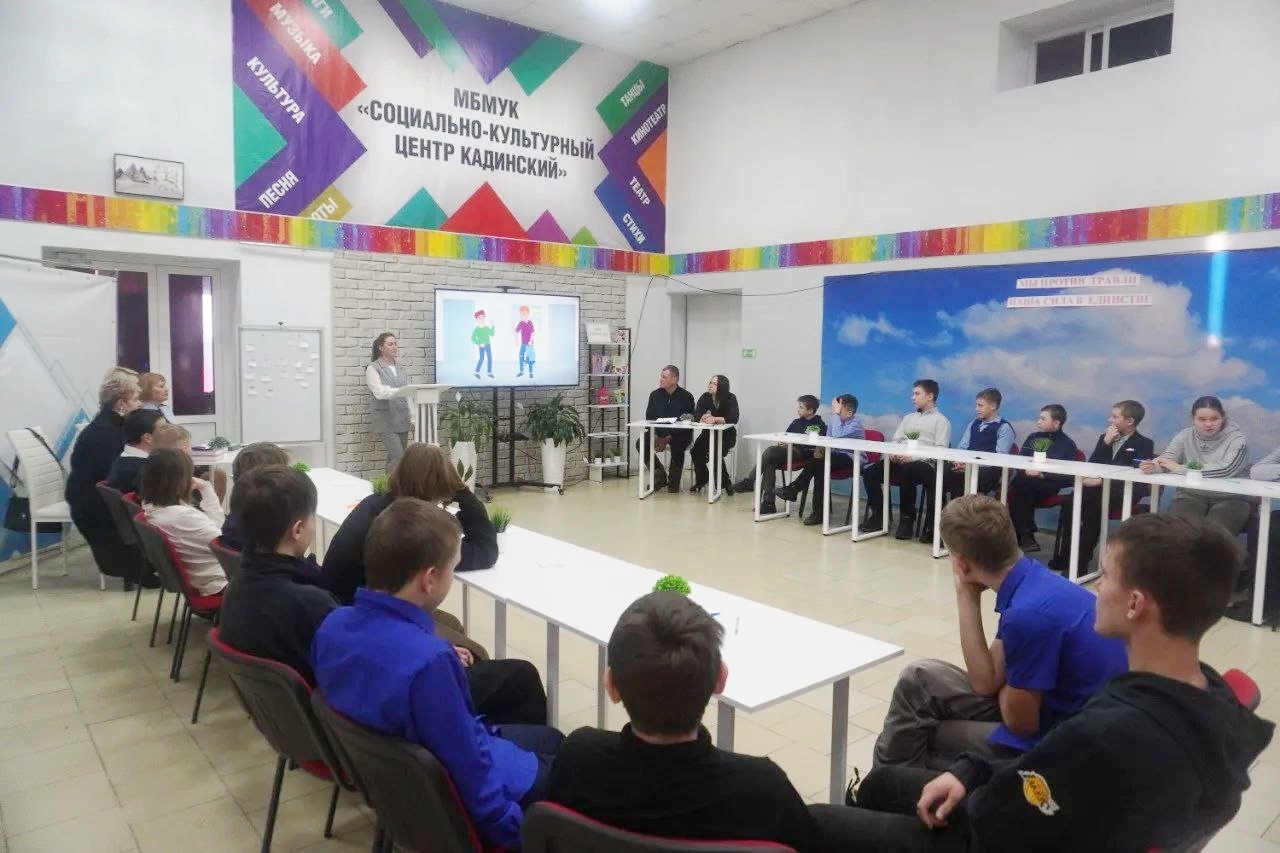 В социально-культурном центре «Кадинский» поселка Куйтун, по инициативе лидеров местных общественных организаций - Совета женщин и Совета отцов, в рамках масштабной профилактической программы «Поможем вместе» прошла тематическая встреча «Буллинг, или как не стать жертвой».