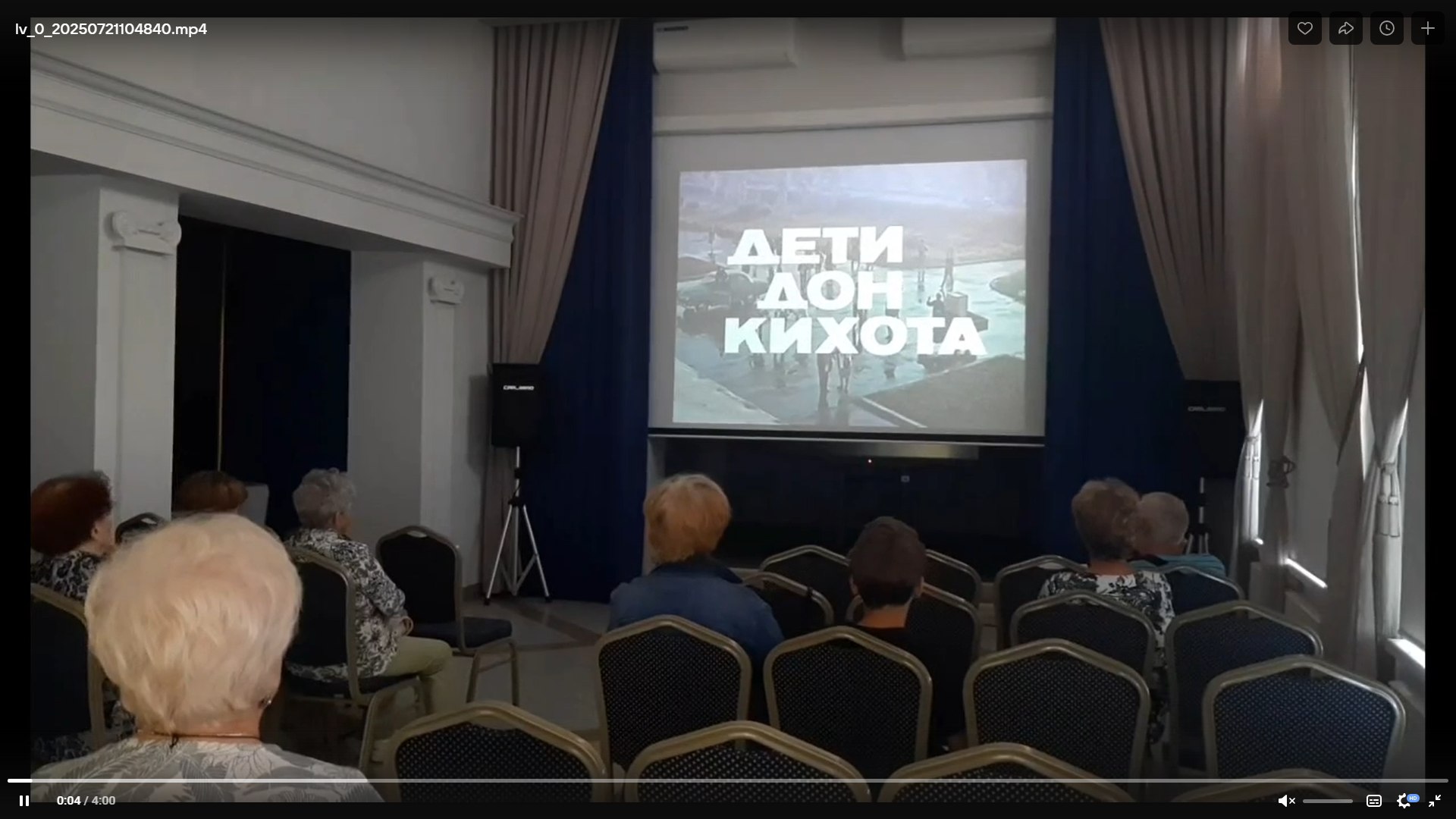 В июле на встречах в рамках проекта акцент был сделан на укрепление института семьи и сохранение семейных ценностей. На обсуждение были вынесены две киноленты прошлого века: «Алёша Птицын вырабатывает характер» (1953 г., реж. Анатолий Граник) и «Дети Дон Кихота» (1965 г., режиссёр Евгений Карелов). В общей сложности их посмотрели 35 человек разных возрастов. На дискуссии, развернувшейся после просмотра, говорили о ценности любви, поддержке близких и магии совместных просмотров таких прекрасных, нестареющих фильмов.