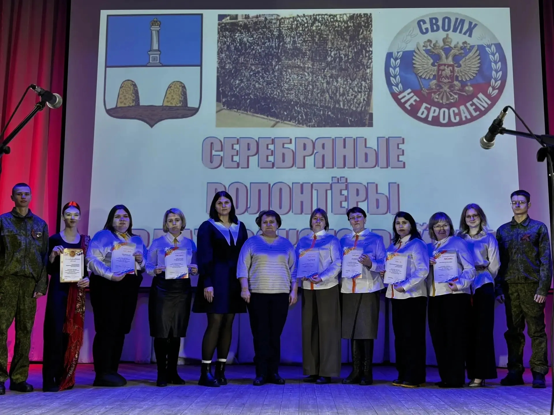 В зале собрались члены местного совета женщин, активисты движения "серебряных" волонтёров, представители школьного и студенческого сообществ и просто неравнодушные люди.