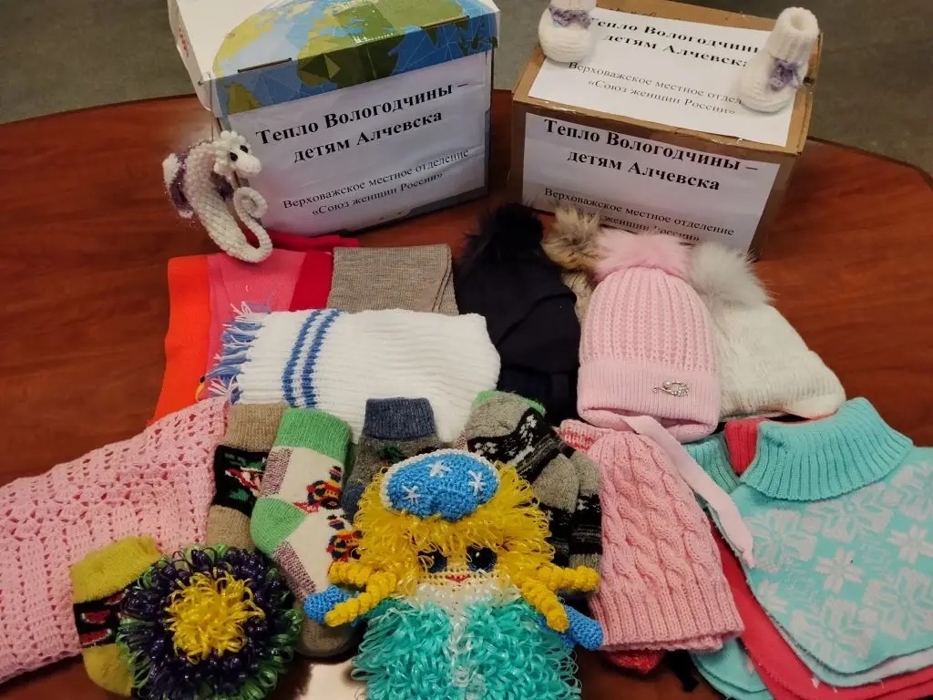 «Наши женщины - мастерицы на все руки и настоящие рукодельницы. Этим летом к нам в женсовет пришла девушка и принесла красивые связанные своими руками детские вещи, чтобы передать их для детей из города Алчевска (ЛНР). Так появилась идея сделать большую благотворительную акцию. Участницы акции вязали носочки, рукавицы, шапки, шарфики и даже игрушки. Многие принесли на пункты сбора теплые детские вещи», - рассказала председатель Вологодского регионального отделения Союза женщин России Валентина Артамонова.