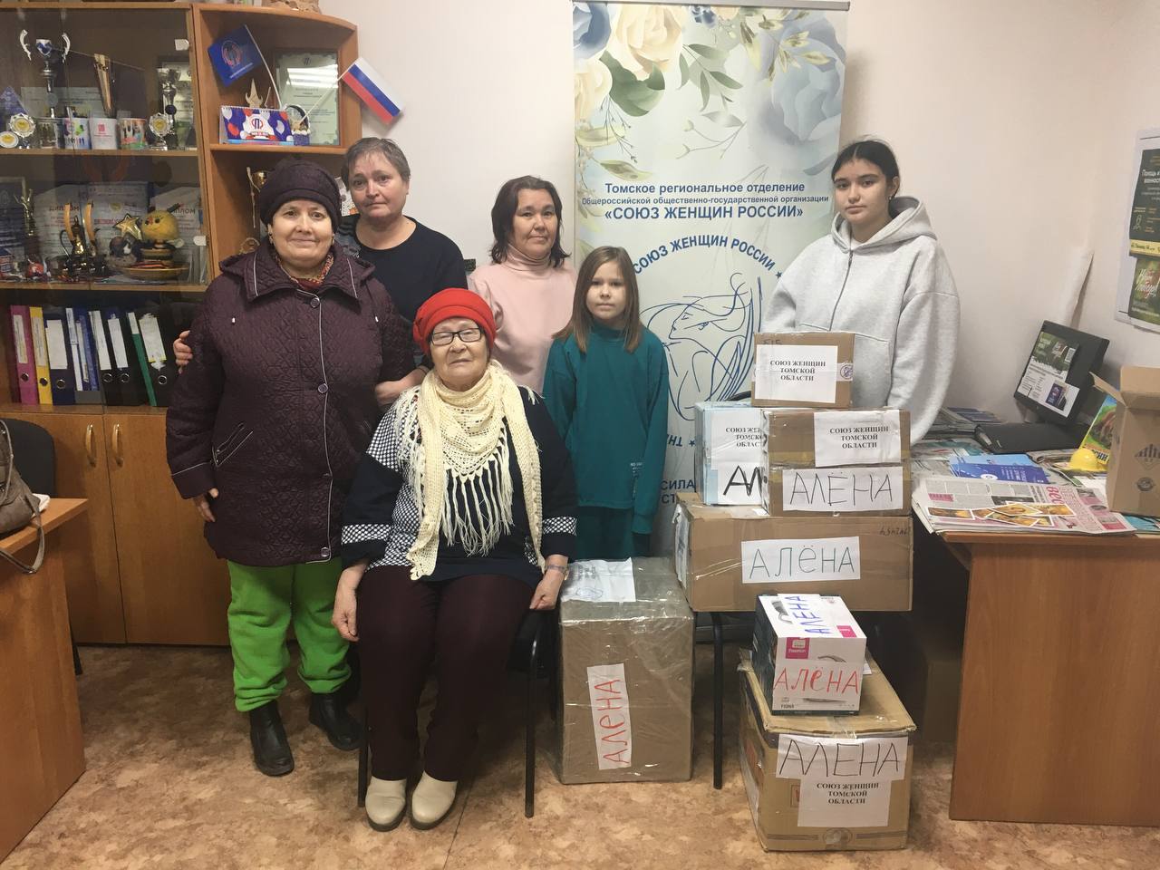 Томское региональное отделение Союза женщин России вместе с Союзом коренных малочисленных народов Томской области уже не в первый раз отправляют гуманитарные посылки в госпиталь Первомайска Луганской Народной Республики. В этом медицинском учреждении работает медсестрой наша подруга из Томска Алёна Есюкевич, многодетная мама, селькупка, волонтёр СВО. Алёна сообщает через созданный ею чат о запросах бойцов на передовой и наших раненых ребят. Сбор всего необходимого проходит на площадках Томского РО СЖР и Союза КМНС.