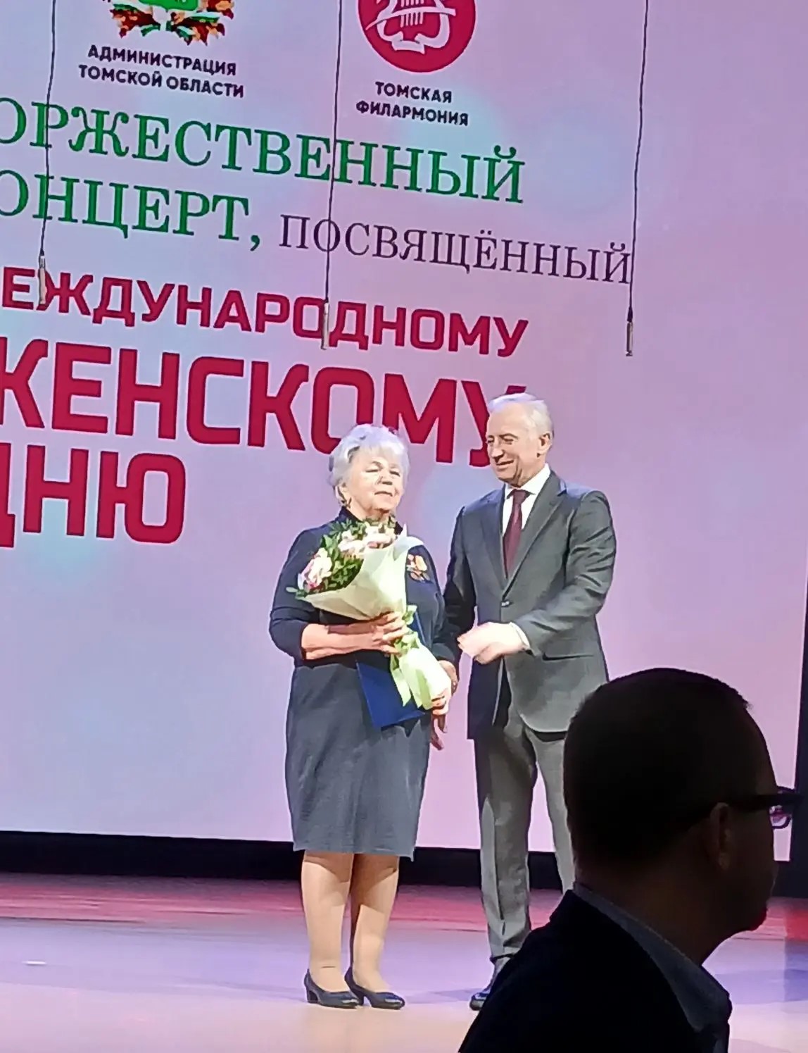 Награды вручил Губернатор Томской области Владимир Владимирович Мазур на праздничном концерте, посвящённом Международному женскому дню.