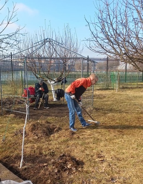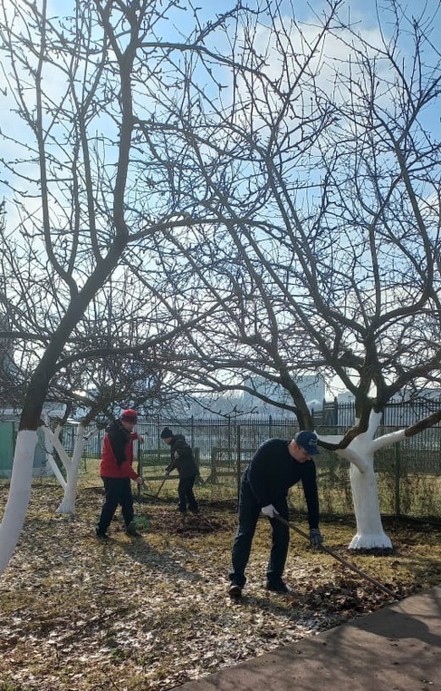 Двенадцать «китят» почистили от листвы яблоневый сад, убрали весь скопившийся за зиму мусор. Работа была дружной и слаженной. Кто-то сгребал листья в кучки, кто-то собирал мешки с листвой.