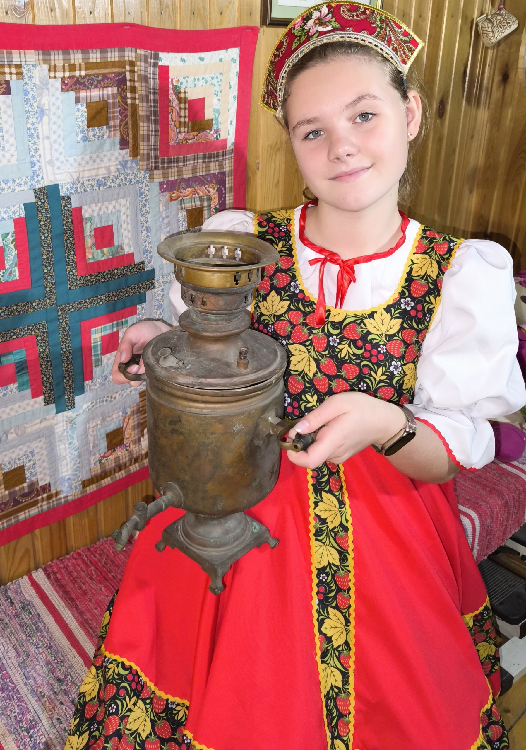 Кузнецов Артём пяти лет из деревни Никифоровская Шенкурского округа рассказывает о тульском самоваре 1962 года, который купила прапрабабушка, а чай из него пьют до сих пор - традиционно по субботам после бани.