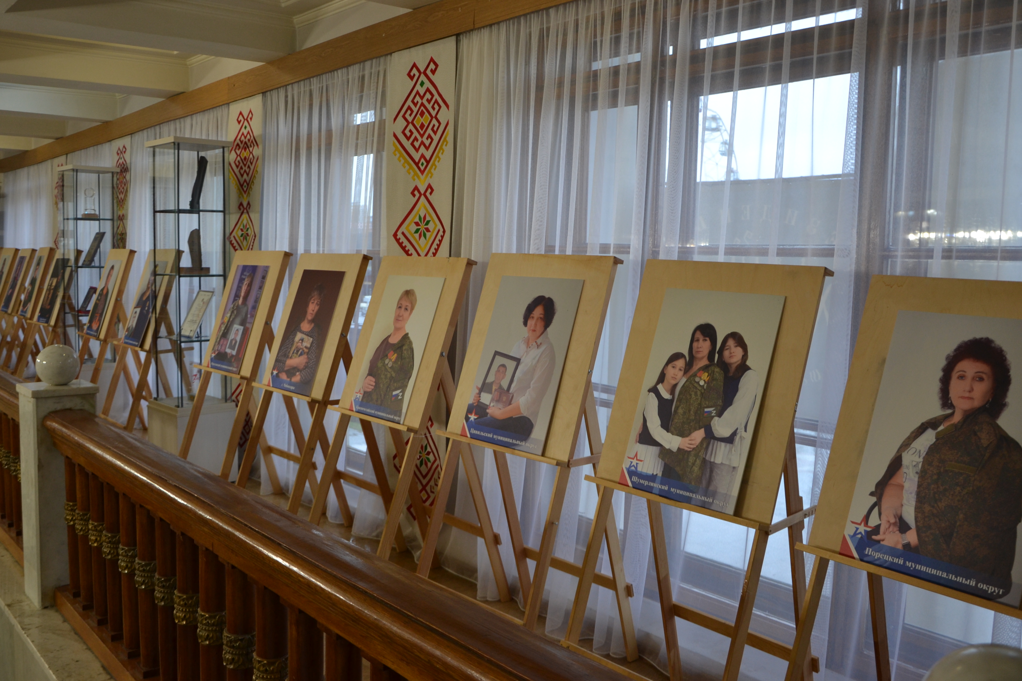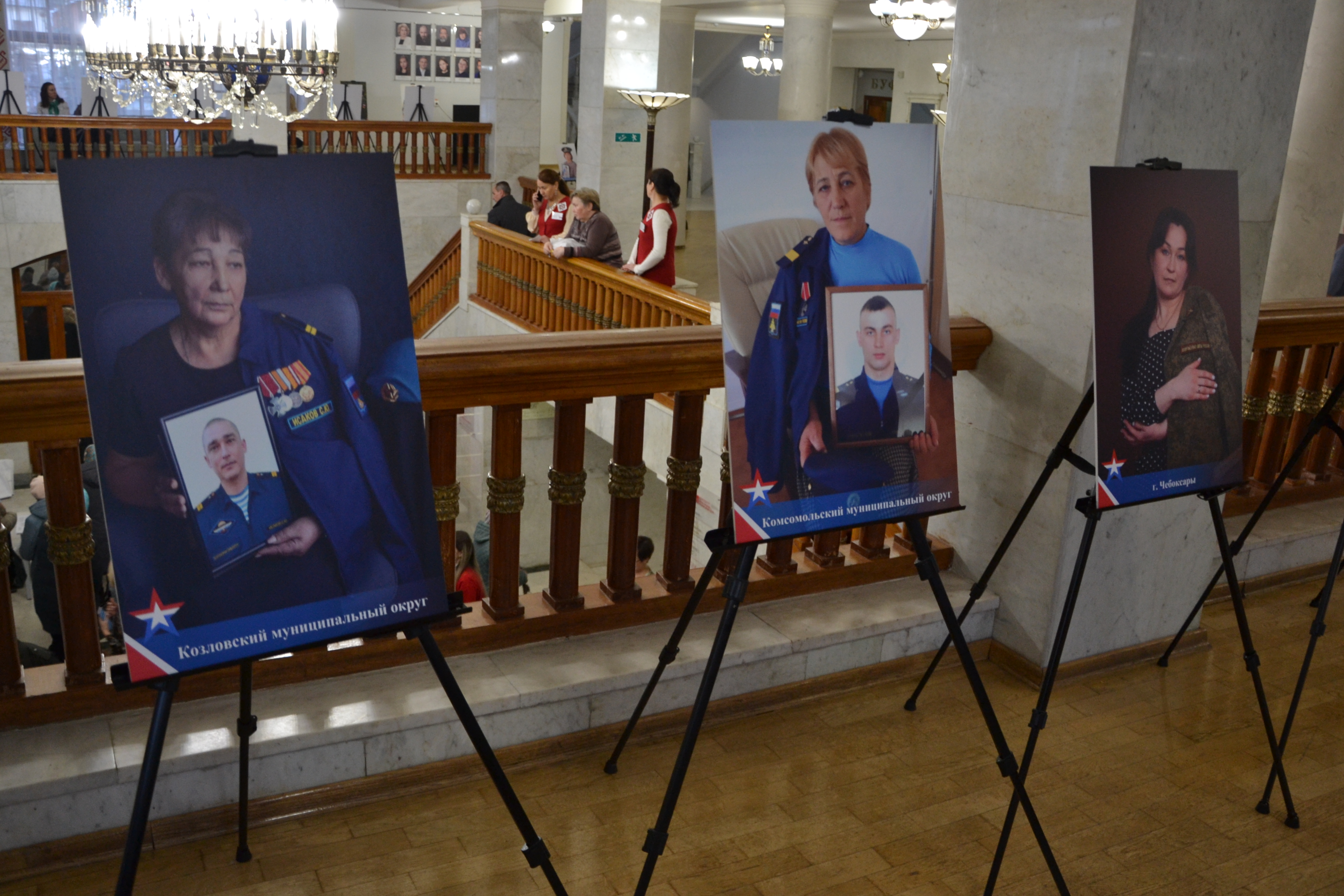 В фойе театра также была размещена фотовыставка «Женщины Героев», подготовленная чувашскими союзницами. В экспозицию вошли портреты матерей и жен бойцов СВО, погибших и сражающихся на передовой.