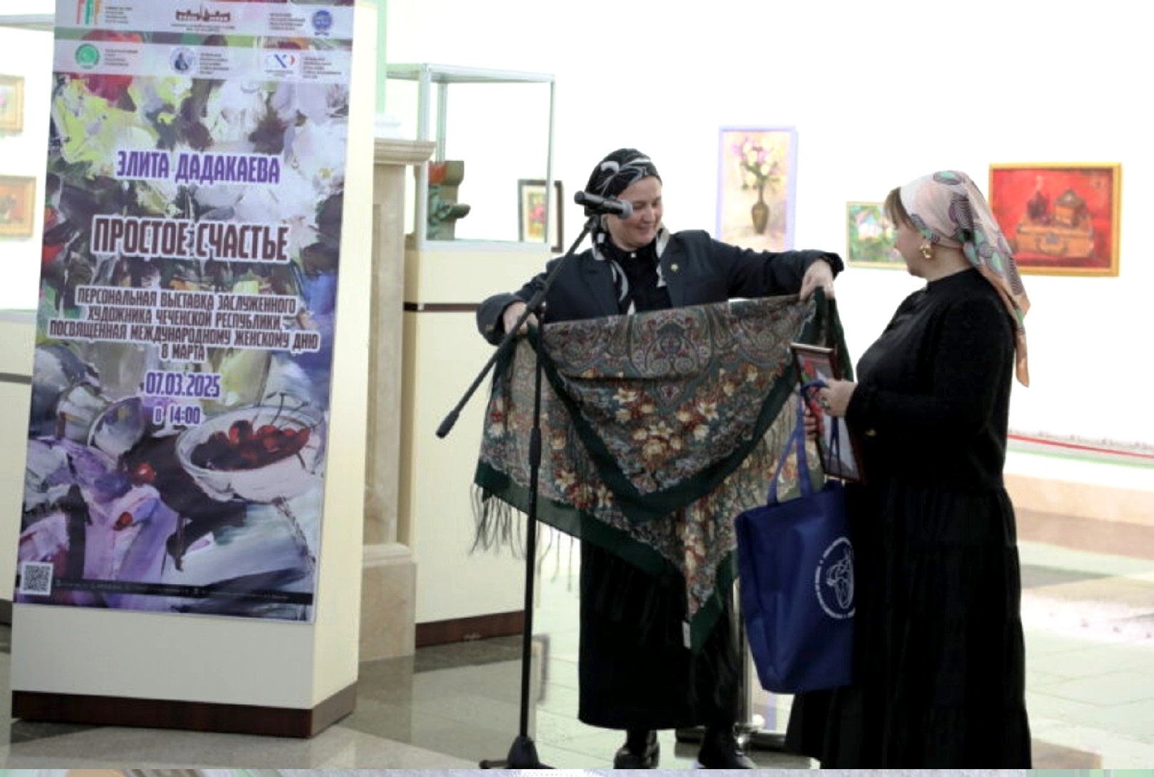 В Мемориальном комплексе Славы им. Ахмата-Хаджи Кадырова прошла персональная выставка члена Чеченского регионального отделения Союза женщин России, заслуженного художника ЧР Элиты Дадакаевой под названием «Простое счастье». Темой экспозиции стал Международный женский день.