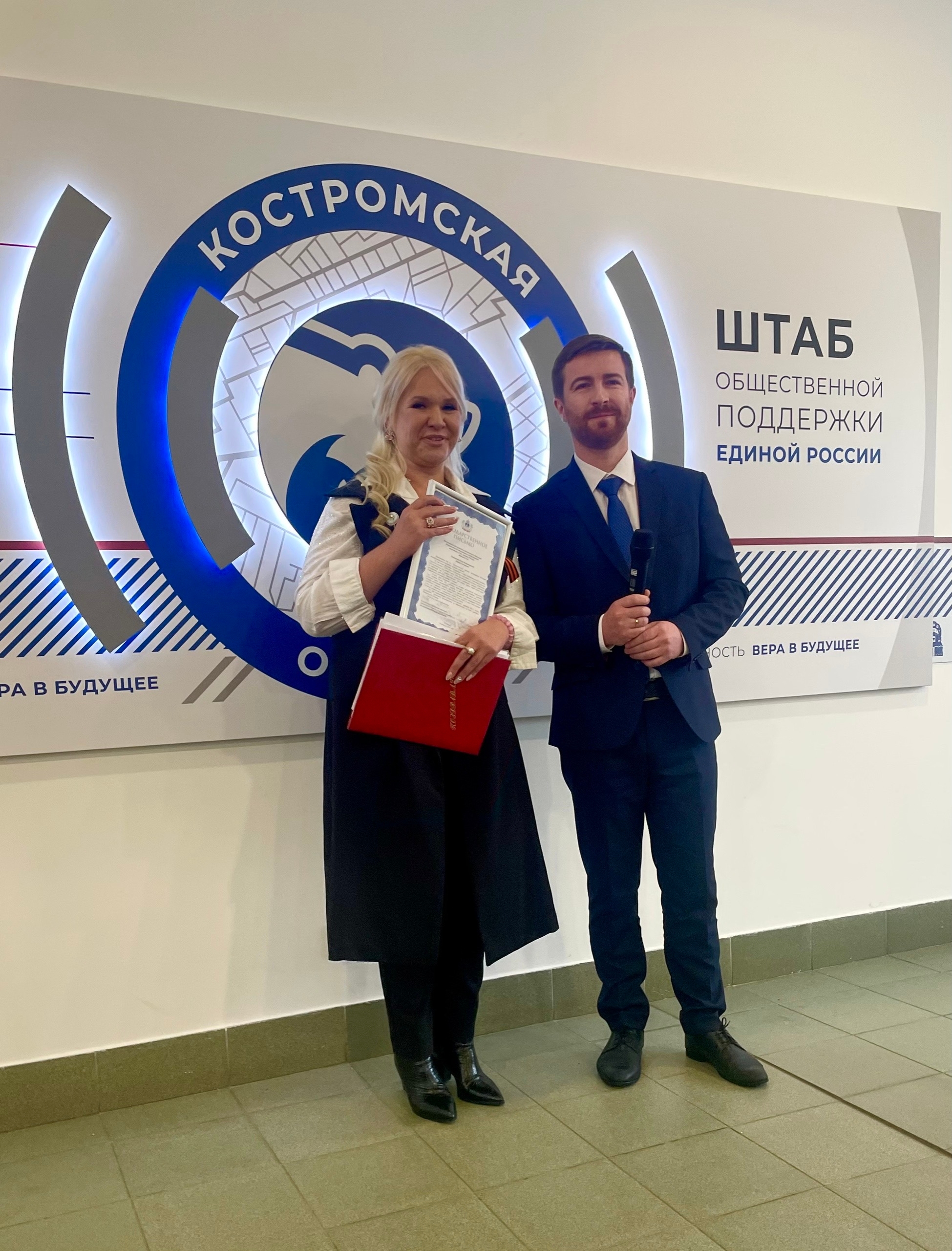 Отдельные слова благодарности хочется выразить организатору Культурного центра УМВД 44, полковнику полиции, автору и исполнителю песен Фролову Андрею Владимировичу; сотрудникам библиотеки им. А.П. Гайдара за оформление книжной выставки «Советские женщины в годы войны», Елене Владимировне Ждановой за подготовку выставки «Женское лицо Победы» в рамках долгосрочной акции Союза женщин России «Волна памяти»; Крыловой Марине Константиновне, заслуженному работнику культуры Костромской области за презентацию «Фронтовая дорожка»; творческому коллективу «Юные таланты» Никольской СОШ Костромского района, руководителем которого является председатель Совета женщин в Костромском муниципальном районе Мозжухина Анна Александровна; воспитанникам и педагогам детского сада № 62 города Костромы; Владимиру Румянцеву и Татьяне Аровой; Татьяне Анатольевне Баландиной, члену Правления Костромского РО СЖР; Александру Кирпичёву, режиссёру - постановщику, заслуженному артисту Костромской области.
