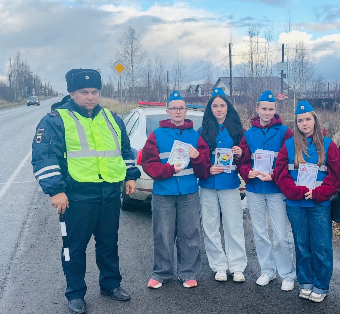 Учащиеся заранее написали письма водителям с призывом к безопасному вождению (особенно сейчас, когда выпал первый снег) и пожеланиями хорошей дороги, украсив их яркими тематическими рисунками.