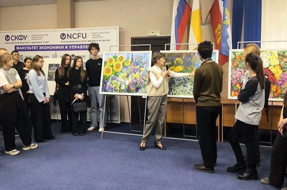На факультете экономики и управления Пятигорского института (филиала СКФУ), при активном участии городского Совета женщин города, состоялось открытие выставки «Цветущий край», организованной кафедрой дизайна. Автор представленных работ – Наталья Игнатьевна Корсун, член Международного художественного фонда, Союза дизайнеров России, Творческого союза художников России, Международной федерации художников, активистка Совета женщин города Пятигорска.