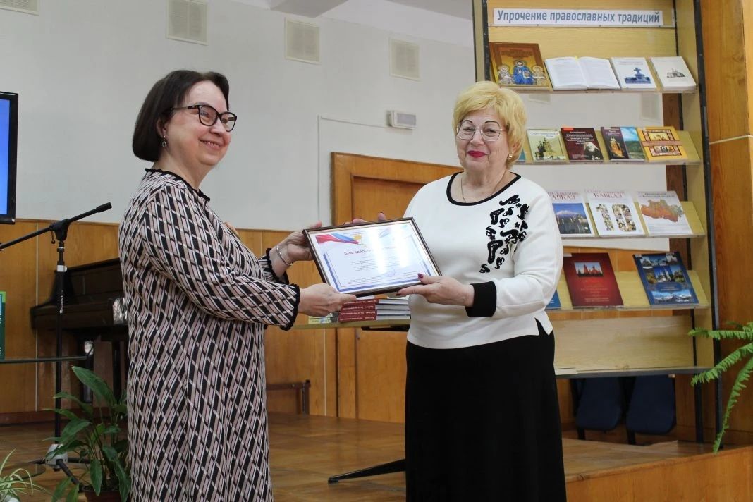 Ведущей вечера стала Лариса Сазанова — главный библиограф библиотеки, краевед, автор книг об истории Кавказских Минеральных Вод и член Совета женщин. В своем вступительном слове она представила гостям книжную выставку «Упрочение православных традиций», подготовленную к знаменательной дате.