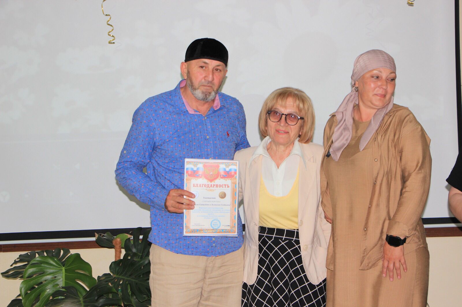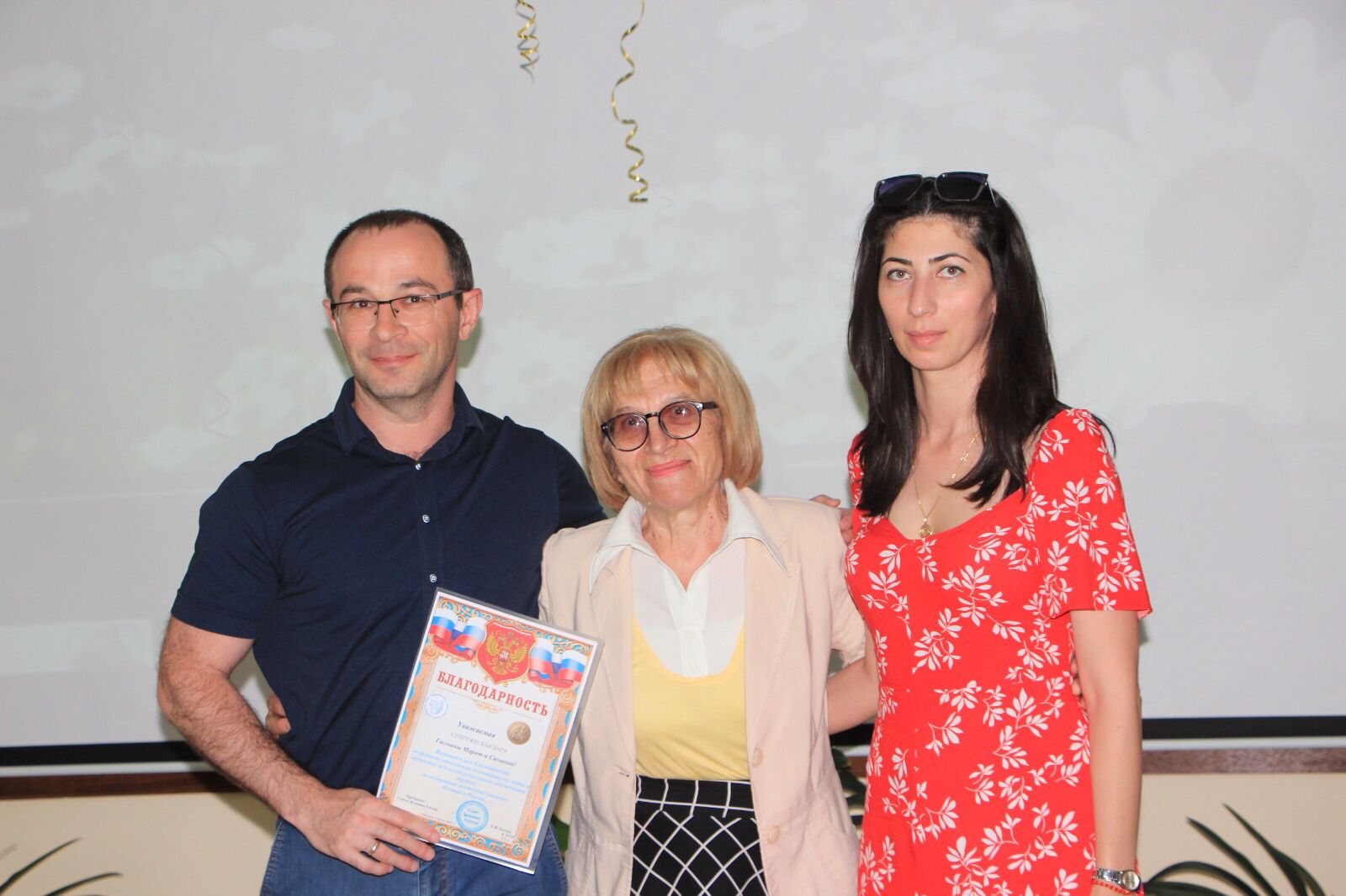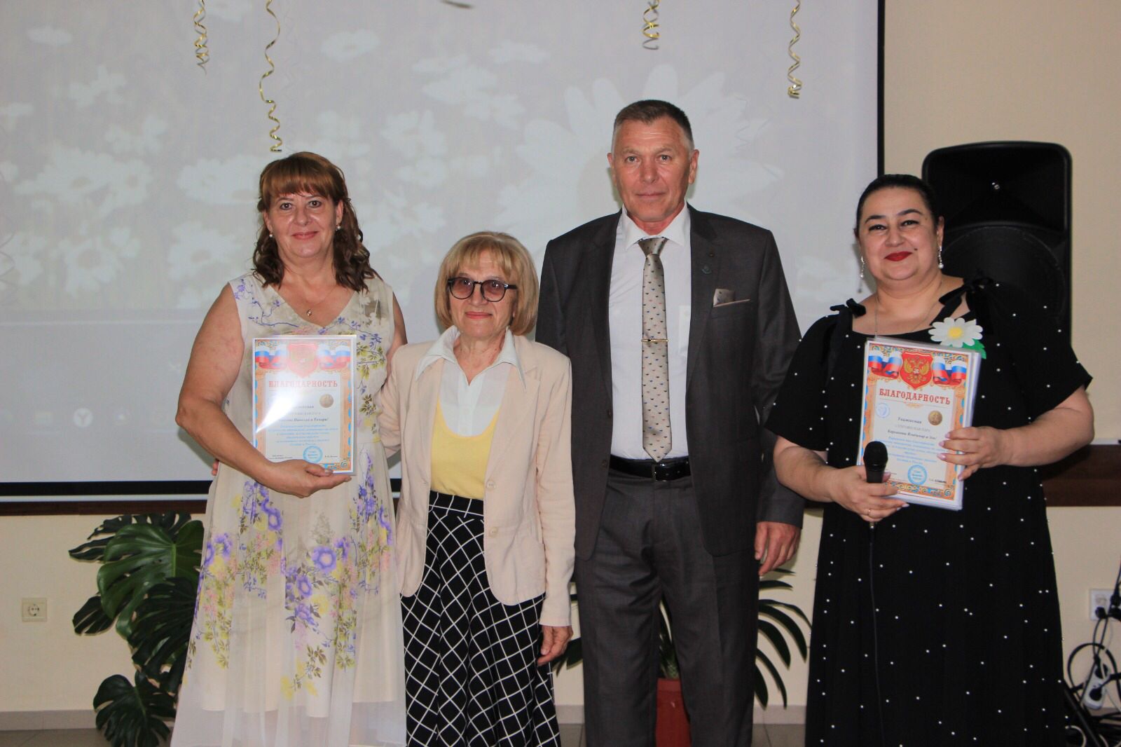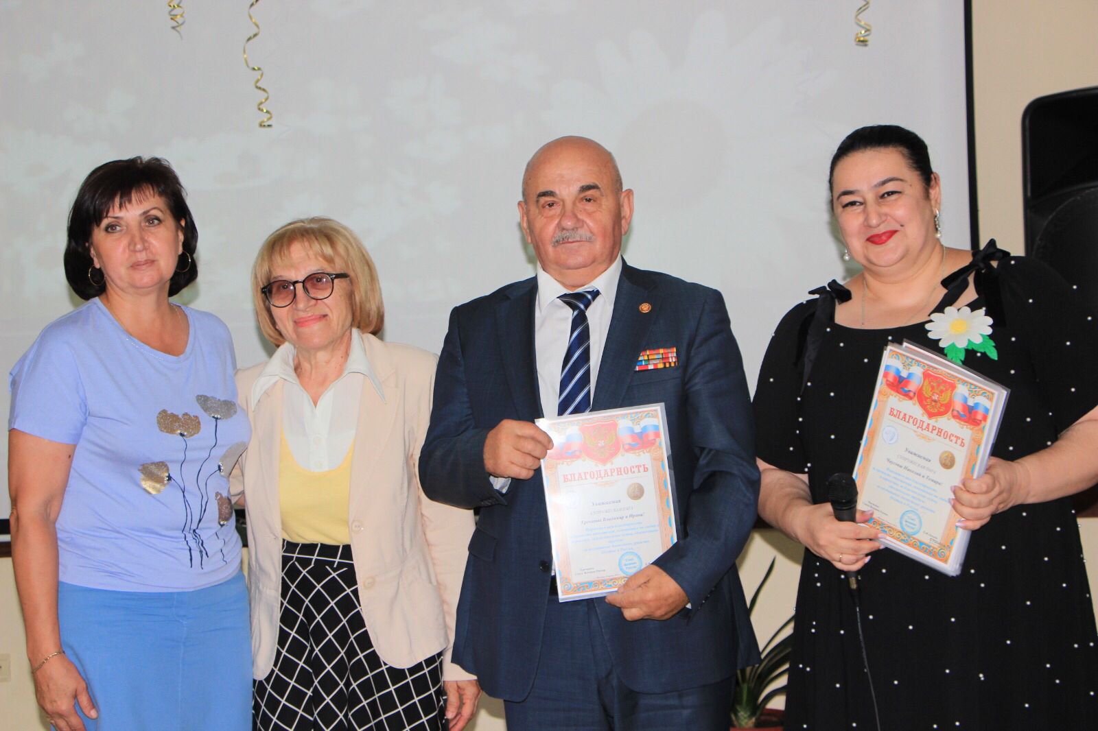 Людмила Владимировна Тихонова поздравила присутствующих с праздником, вручила благодарственные письма и подарки, а директор ГБУ «Санаторий «Сосновая роща» Инна Рубеновна Джиоева - подарочные сертификаты на 10 процедур.