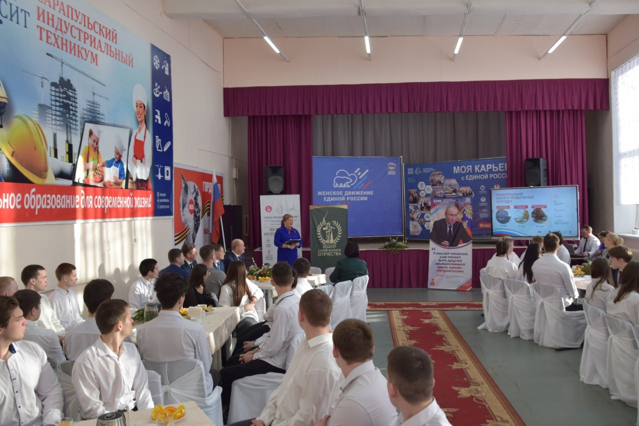 В Сарапульском многопрофильном колледже собрались депутаты Сарапульской городской Думы, представители промышленных предприятий, общественные деятели, успешные выпускники колледжа, руководители спортивных организаций и студенты, показавшие высокие результаты в учёбе и общественной жизни.