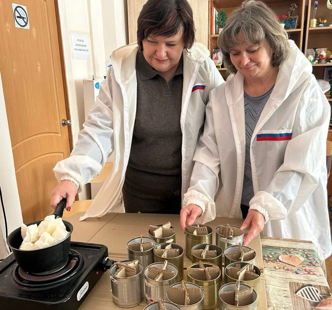 Готовые свечи вместе с очередной партией гуманитарного груза будут переданы нашим защитникам в зону СВО.