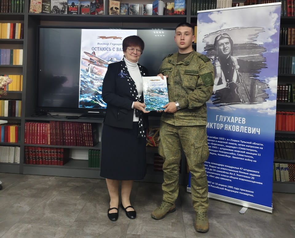 19 сентября в рамках проекта «Мою страну воспитывало небо» в библиотеке ДК им. Чкалова прошла презентация книги морского лётчика-штурмовика Великой Отечественной войны, Героя России Виктора Глухарёва «Остаюсь с вами».