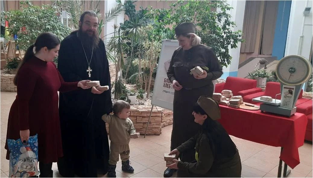 Члены женсовета Тербунского округа, сотрудники библиотеки, раздали гостям символические кусочки хлеба весом в 125 грамм, рассказали о трагических события блокады, подвиге ленинградцев и защитников города.