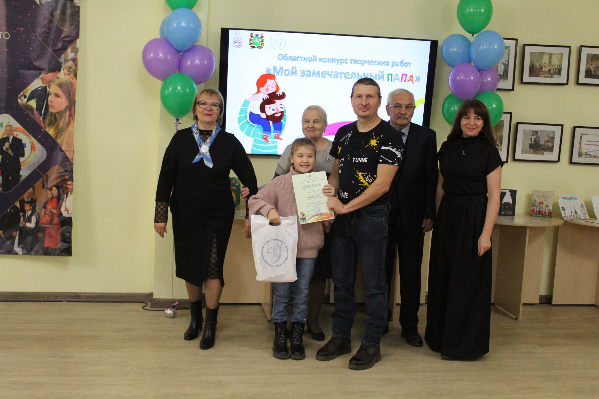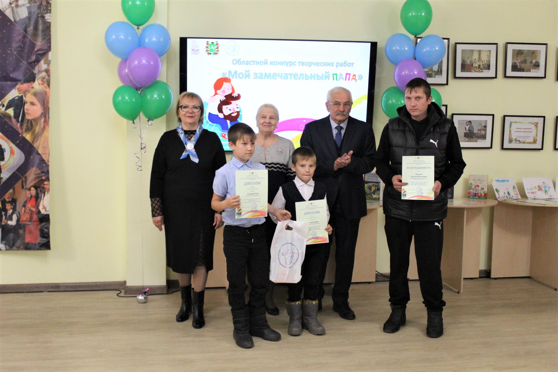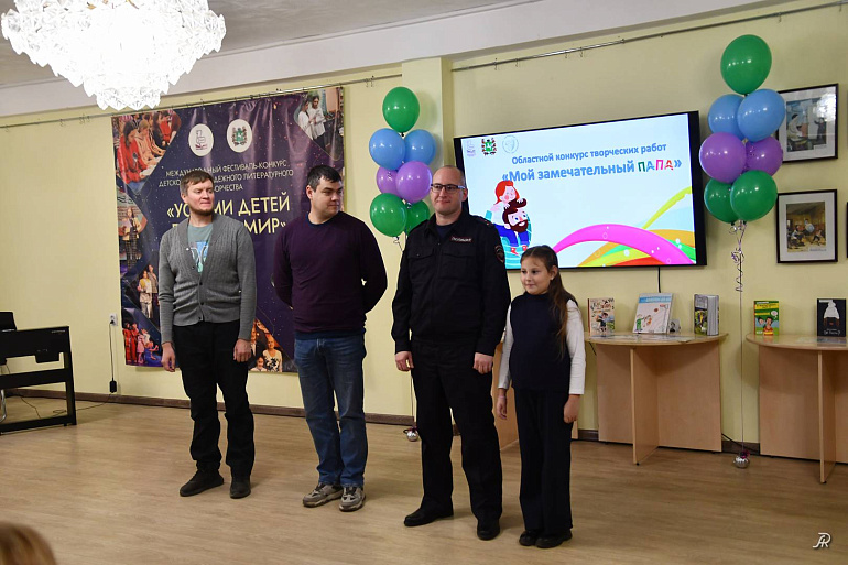 19 октября в Томской областной детско-юношеской библиотеке состоялось торжественное награждение победителей и дипломантов Областного конкурса творческих работ «Мой замечательный папа», посвященного Дню отца. Учредители: Томская областная детско-юношеская библиотека при поддержке Департамента по культуре Томской области и Томское региональное отделение Союза женщин России.