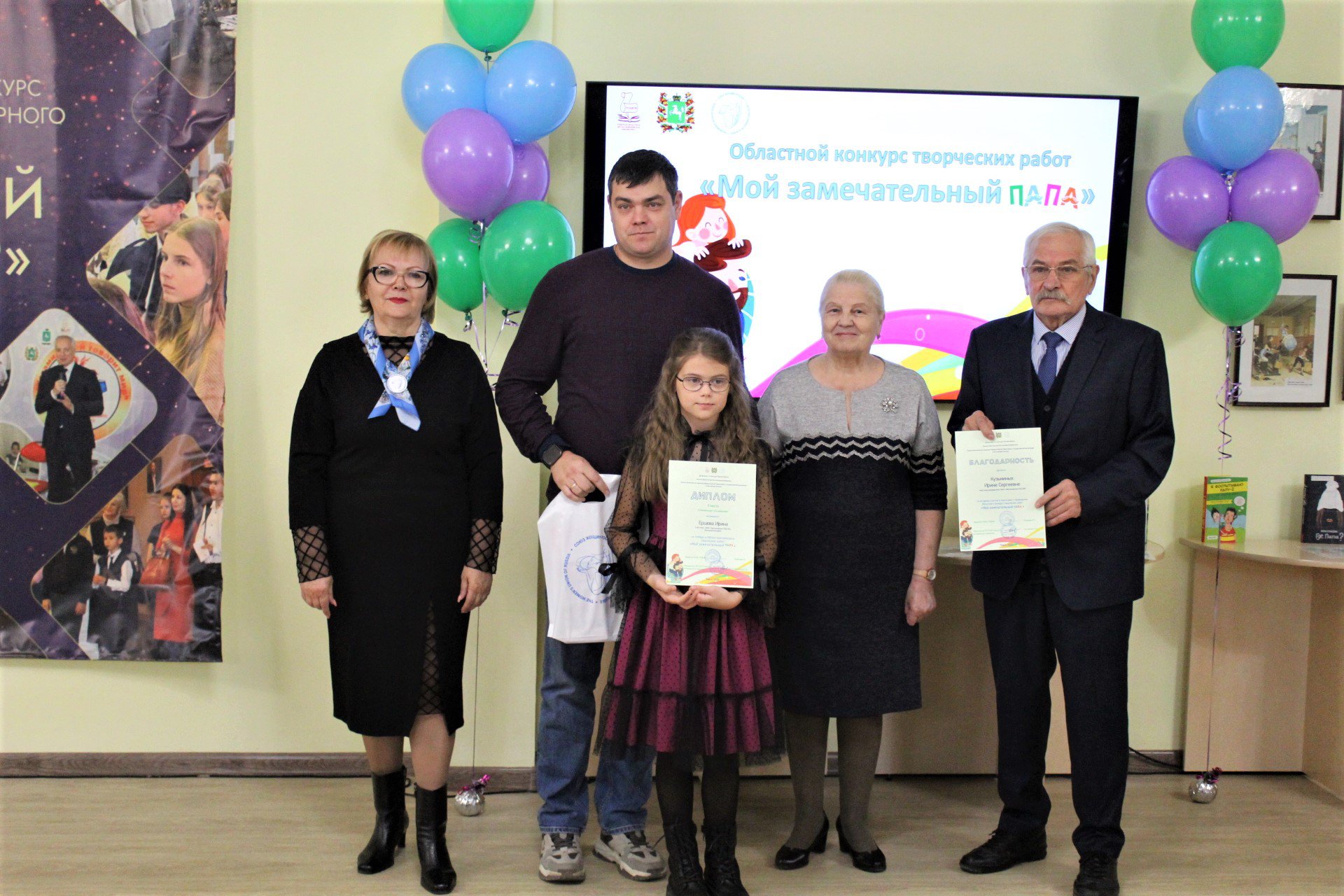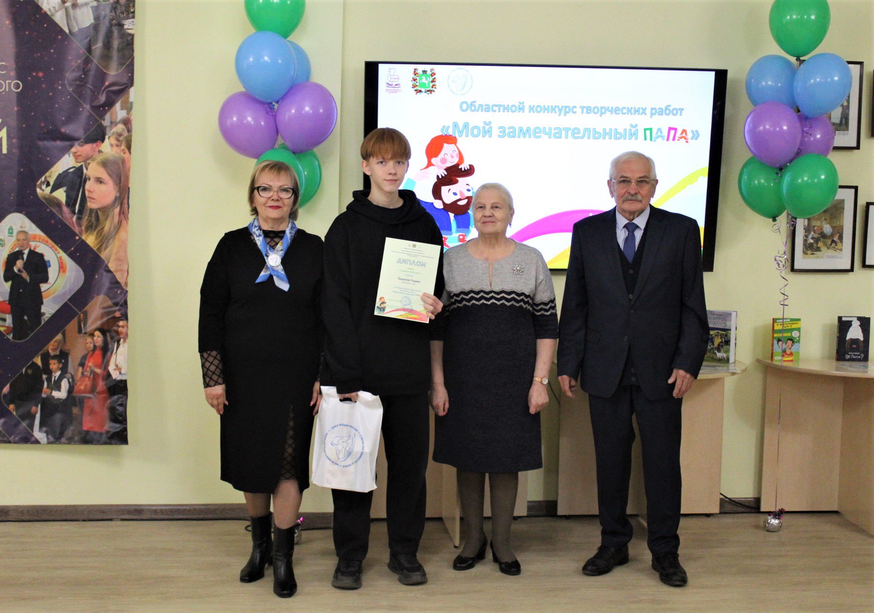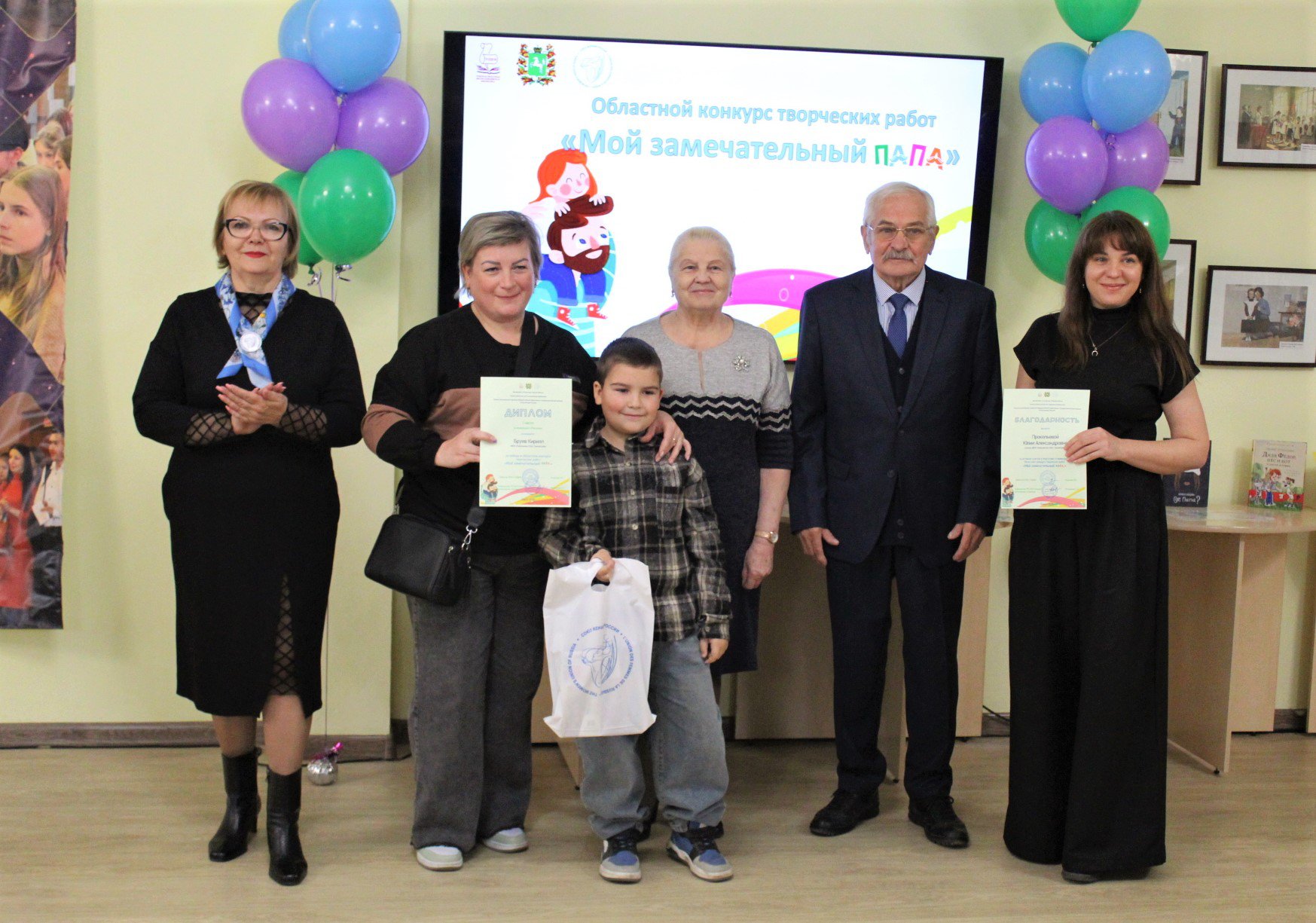 19 октября в Томской областной детско-юношеской библиотеке состоялось торжественное награждение победителей и дипломантов Областного конкурса творческих работ «Мой замечательный папа», посвященного Дню отца. Учредители: Томская областная детско-юношеская библиотека при поддержке Департамента по культуре Томской области и Томское региональное отделение Союза женщин России.