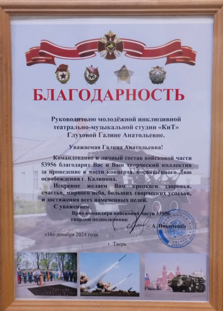 В преддверии этой памятной даты Молодёжная инклюзивная театральная студия «КиТ» со своим руководителем, заместителем председателя по социальным вопросам Тверского регионального отделения Союза женщин России, Послом культуры СЖР Галиной Глуховой побывали в войсковой части города и провели час памяти, посвящённый этому событию.