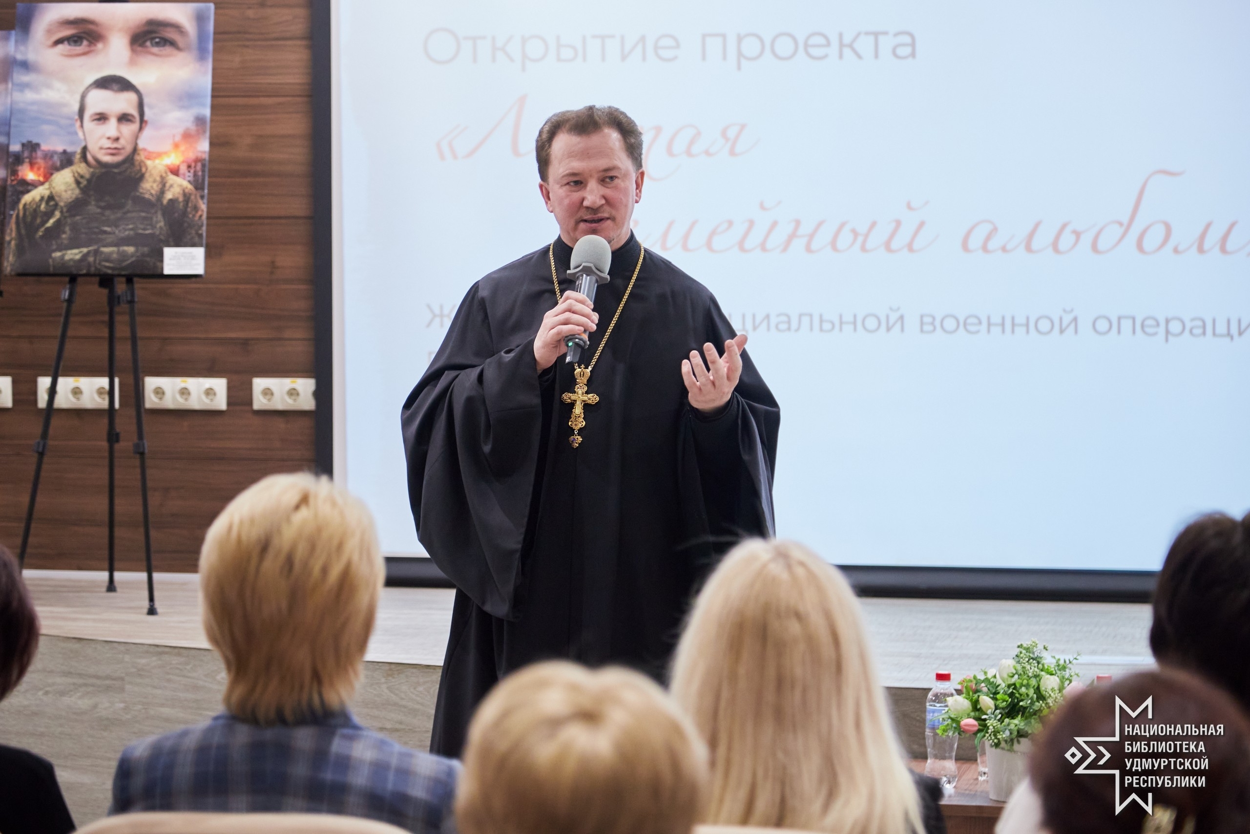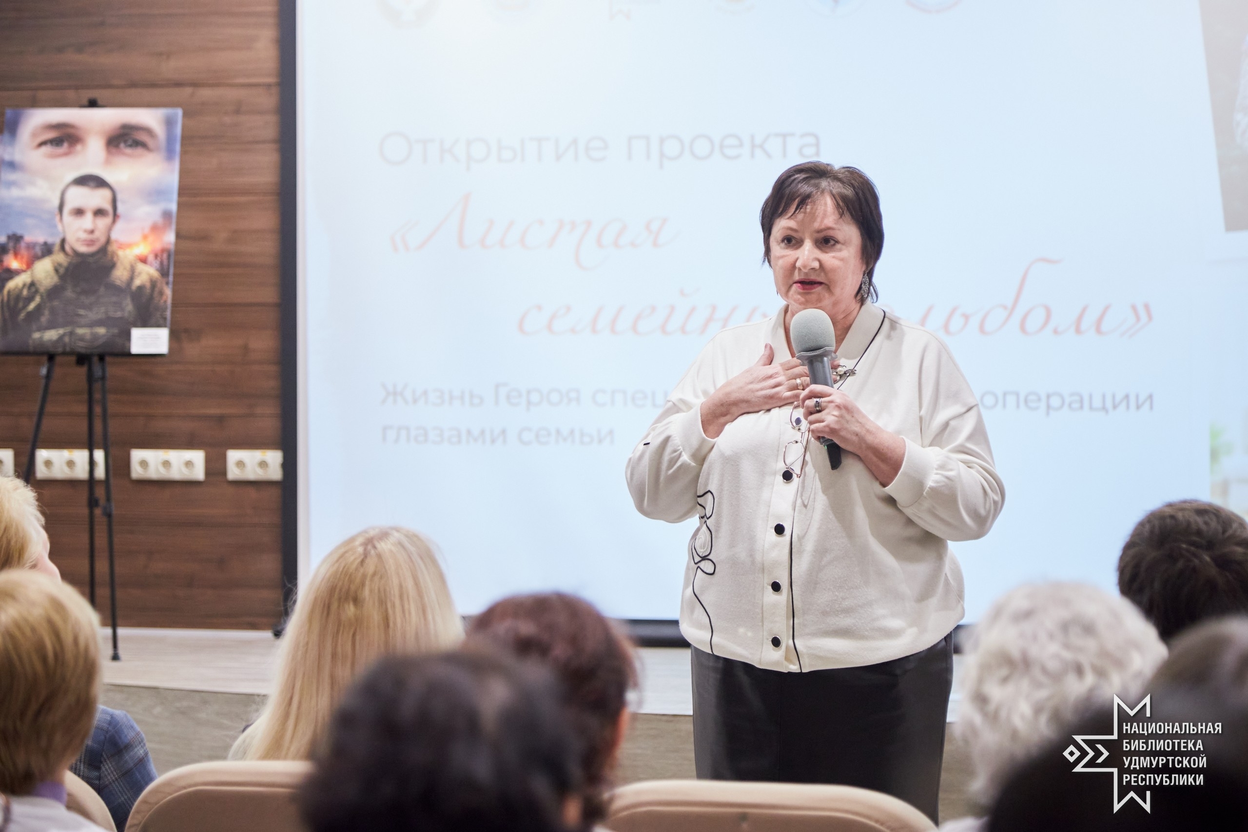 23 марта в Национальной библиотеки Удмуртской Республики прошло торжественное открытие проекта «Листая семейный альбом», посвящённого участникам специальной военной операции. Мероприятие прошло под лозунгом «Жизнь героя глазами семьи» и стало значимым событием в рамках республиканского плана мероприятий по увековечению памяти участников СВО. Проект «Листая семейный альбом» - это серия встреч, на которых семьи рассказывают истории своих родных - о жизни, выборе, судьбе и памяти.