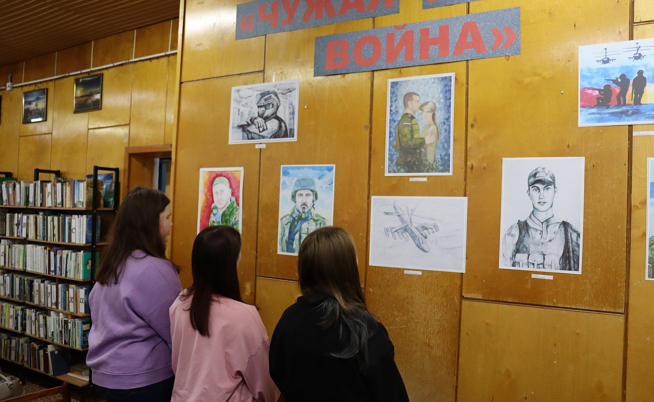 В фойе библиотеки развернулась выставка рисунков, вошедших в издание. Особое место в экспозиции заняли портреты погибших защитников Родины из Грязовецкого округа.
