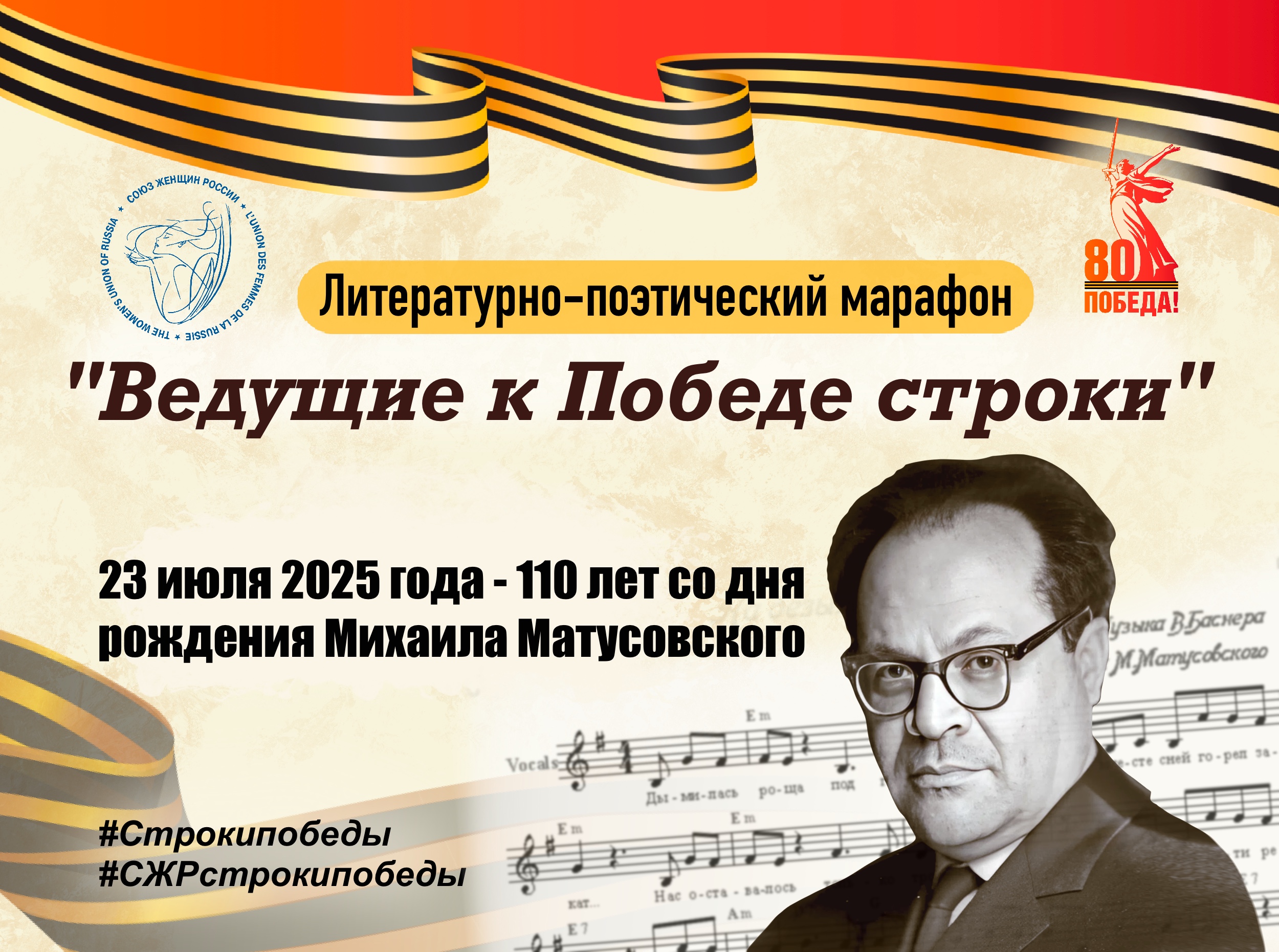 P.S. Вы можете принять участие в Марафоне Союза женщин России «Ведущие к Победе строки», выбрав к прочтению любое произведение о Великой Отечественной войне. Юбилеи – лишь повод отдать дань памяти и уважения поэтам, чьи особые даты мы отмечаем в этом году.