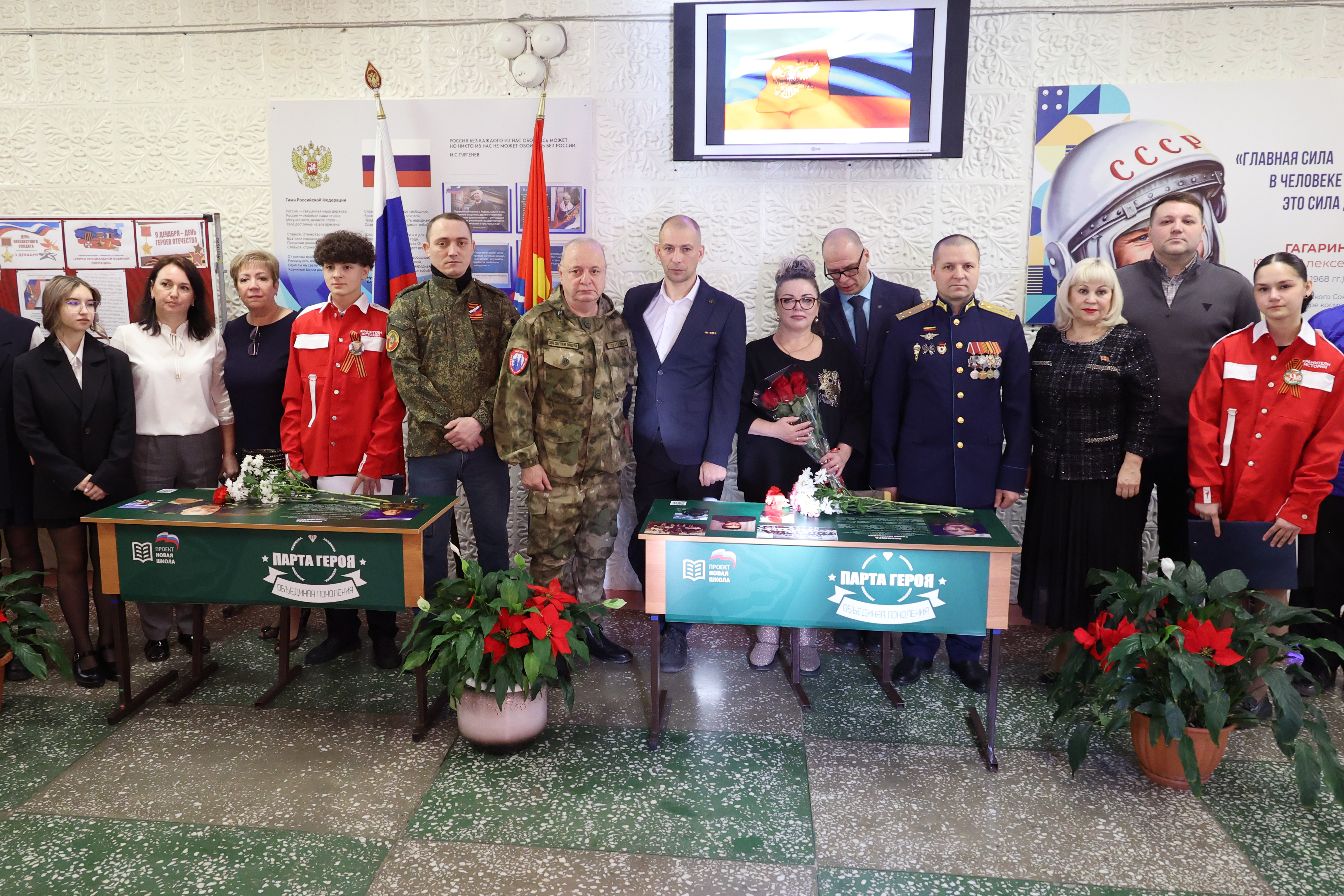 Право открыть мемориальные Парты предоставили ветеранам боевых действий Алексею Нестерову и Андрею Аксанову, а также учащимся 11-го класса Илье Путинцеву и Лилии Рымарь-Харитоновой. Память героев, павших во имя Родины, присутствующие почтили минутой молчания.