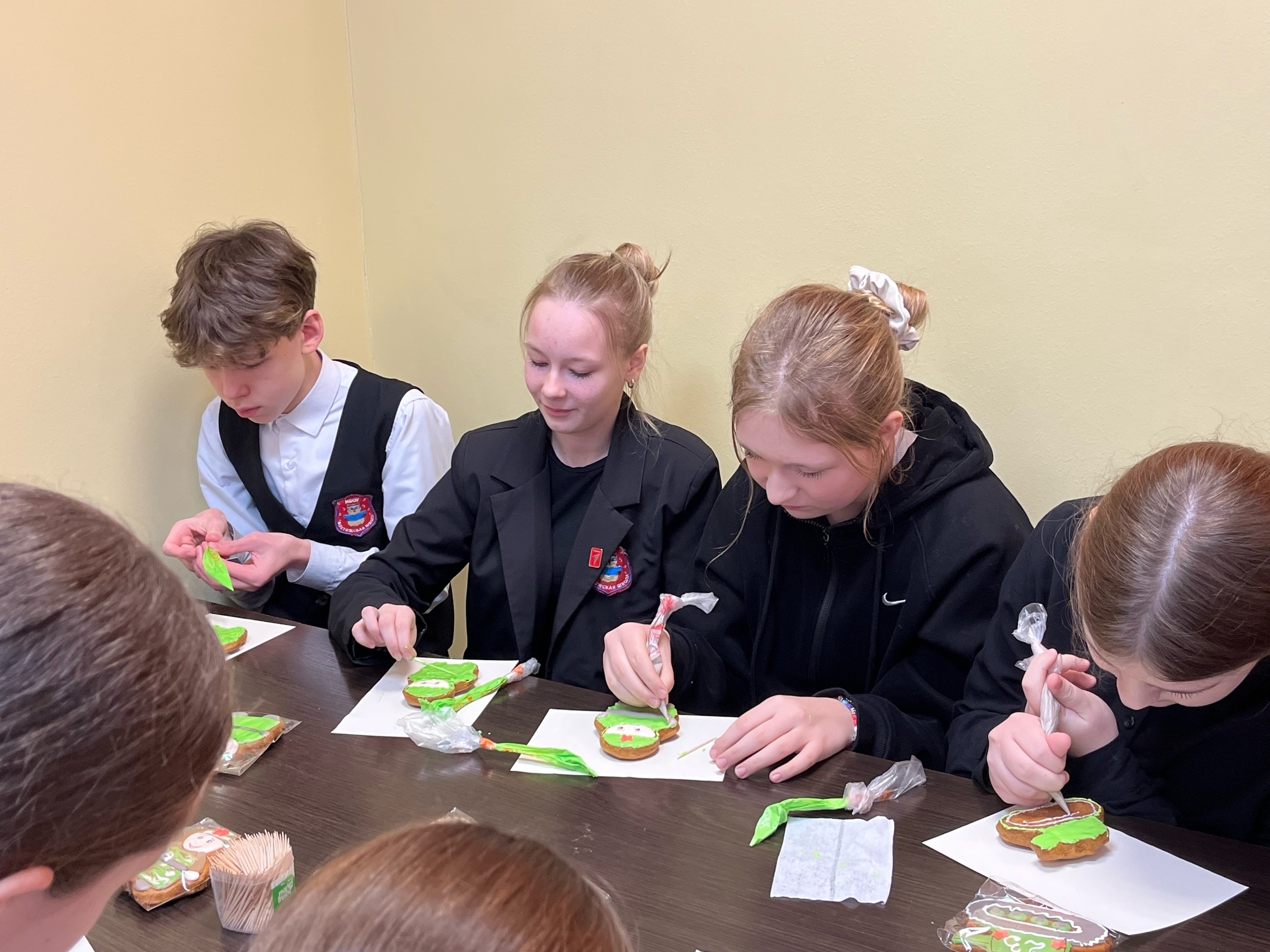 А еще наша союзница познакомила учащихся со своим увлечением - изготовлением и росписью имбирных пряников. Встреча завершилась творческим мастер-классом "Роспись пряника" в рамках акции Союза женщин России "Защитникам с любовью". Все изготовленные ребятами сладости женсовет отправит нашим воинам, проходящим лечение в госпитале Белгорода.