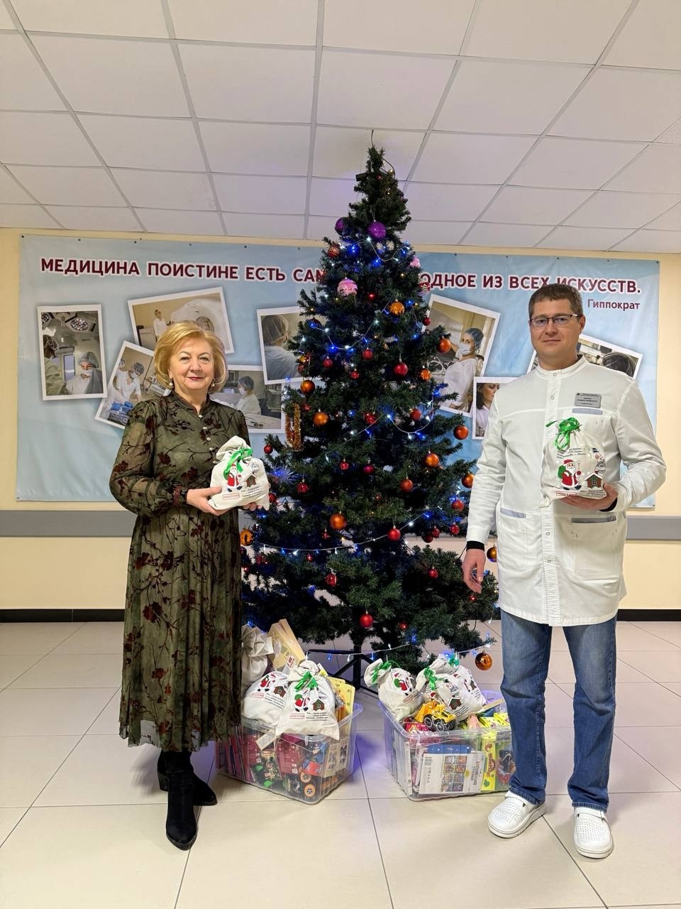 Председатель Вологодского регионального отделения Союза женщин России Валентина Артамонова передала главному врачу областной детской клинической больницы Андрею Логвину «коробки храбрости» и сладкие подарки для детей, которые будут встречать Новый год в больничных стенах.