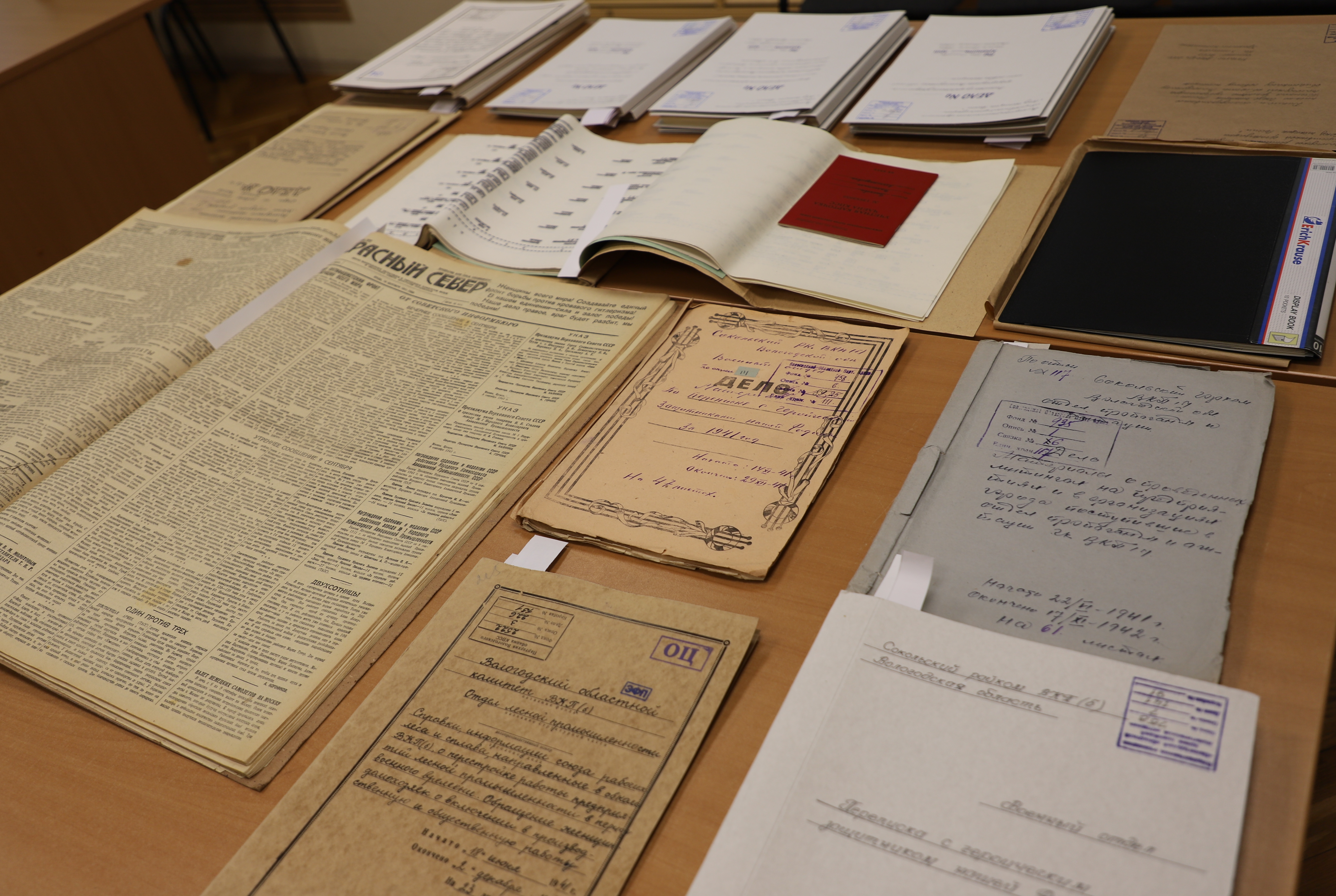 Также в архиве удалось найти резолюцию Антифашисткого митинга женщин города Сокол, принятую 20 сентября 1941 года, письмо женщинам Сокольского района от бойцов с фронта, документы по истории создания областного совета женщин, в том числе учетную карточку члена КПСС Валентины Александровны Басковой, первого председателя областного совета женщин.