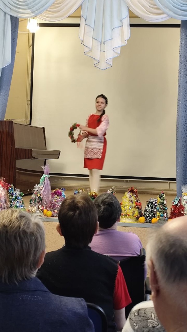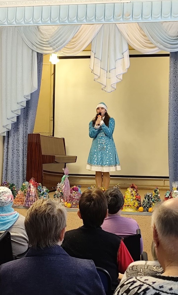 Вот и заканчивается ещё один год, и мы стараемся проводить его весело и по-доброму. 24 декабря артисты молодёжной инклюзивной театральной студии «КиТ» Тверской областной специальной библиотеки для слепых им. М.И. Суворова (Марина Тулинова, Максим Столяров, Анастасия Захарова), участники чемпионата по караоке Ольга Вольная и Рустам Алимджанов, учащаяся Тверской гимназии № 8 Василиса Ходак, побывали в гостях у жителей Тверского геронтологического центра. Свой концерт творческая бригада назвала «Волшебство новогодних огней».