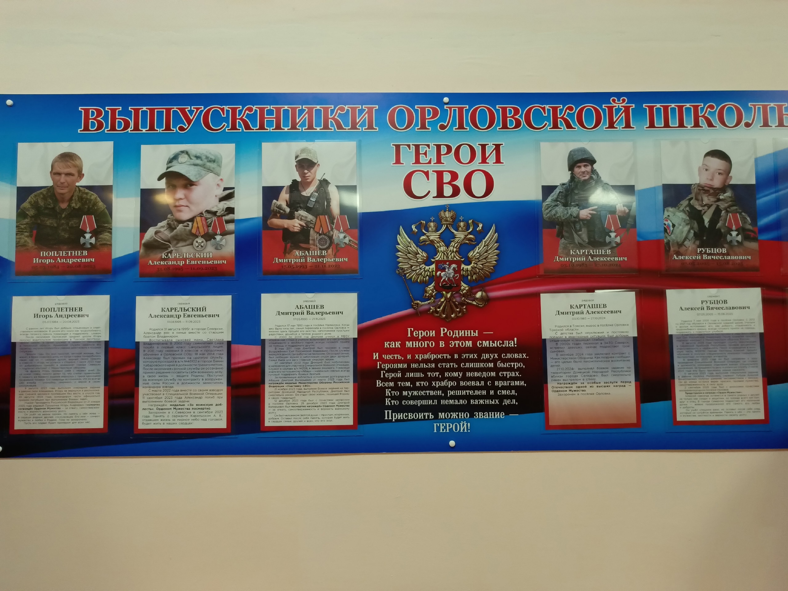 21 ноября 2025 года состоялось открытие мемориальной доски (стенда) выпускникам Орловской школы ЗАТО Северск, погибшим в ходе проведения специальной военной операции.