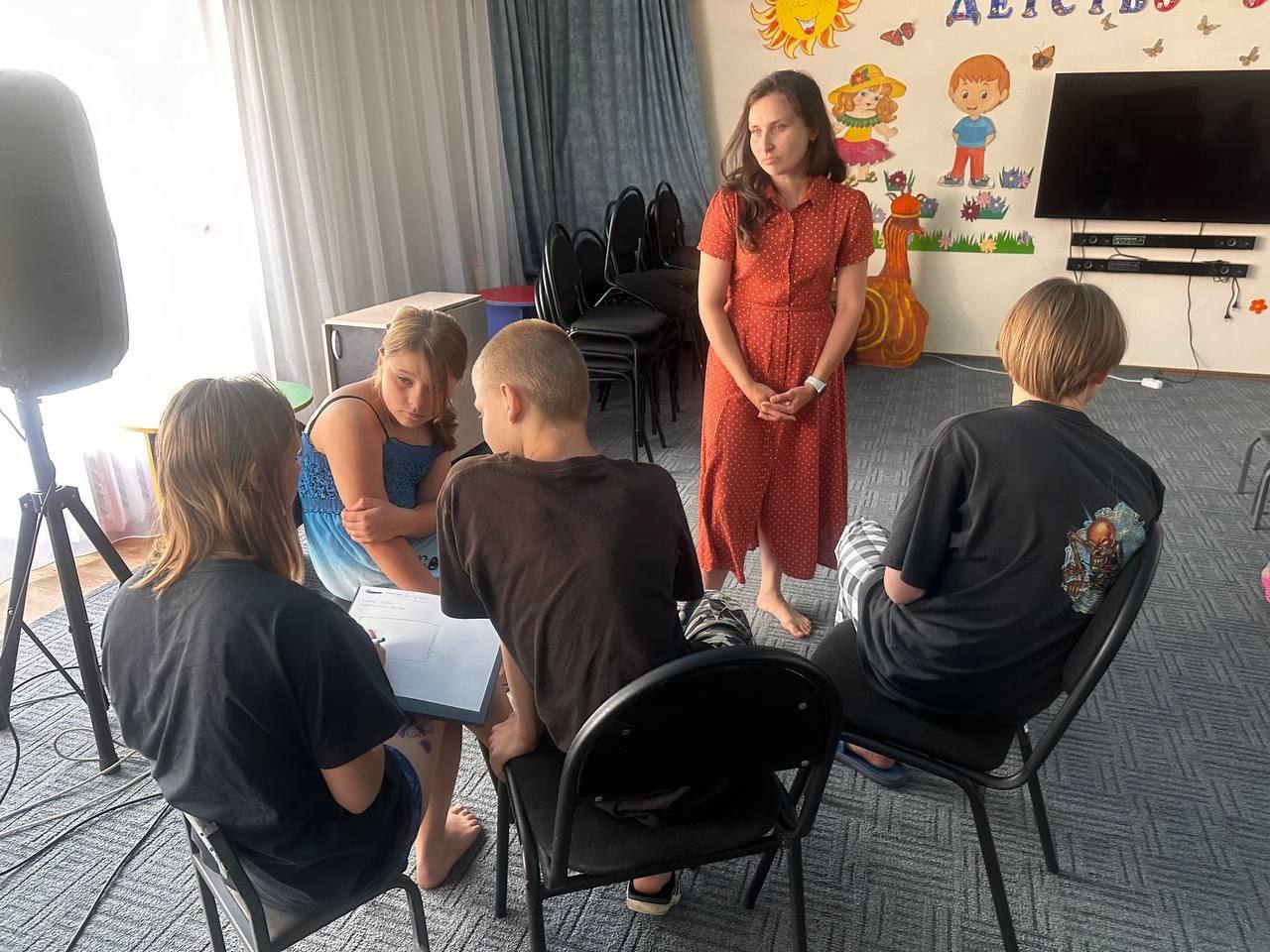30 июня 2024 года, в рамках реализации проекта "Будь кем хочешь", президент Общественно полезного благотворительного фонда "Живи Донбасс", член ЛРОО "Союз женщин Донбасса" Марина Соловьева, педагог Елена Агибалова и психолог Ольга Шарата провели занятие с воспитанниками ГБОУ ЛНР "Луганский детский дом" - учащимися 7-9 классов.