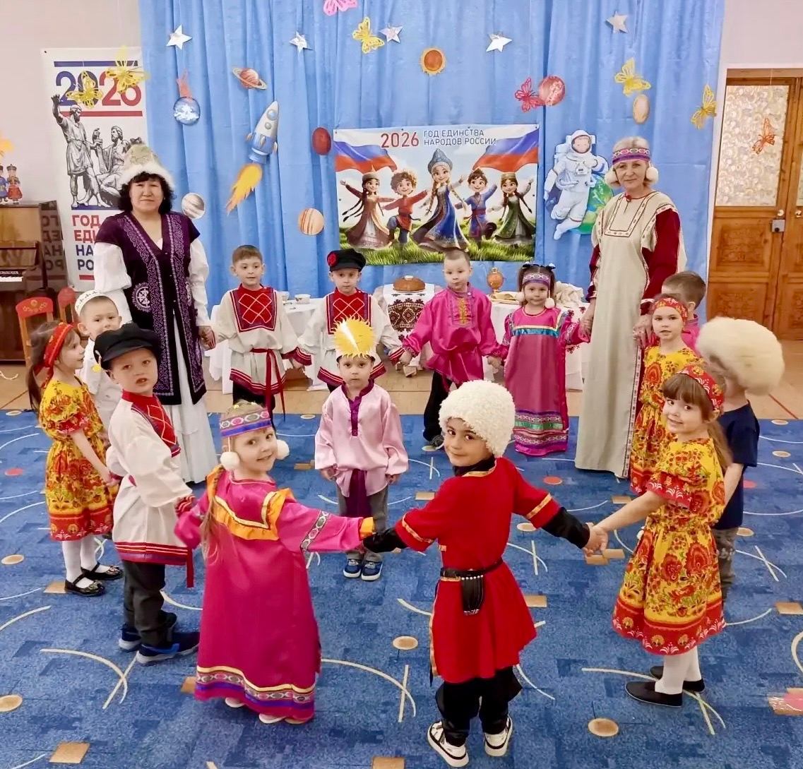 Занятие пролетело быстро, и малыши открыли для себя многоликий мир нашей Родины. Ведь любовь к Отечеству начинается именно через уважение к традициям соседа и радость от того, что мы такие разные, но такие близкие и родные.