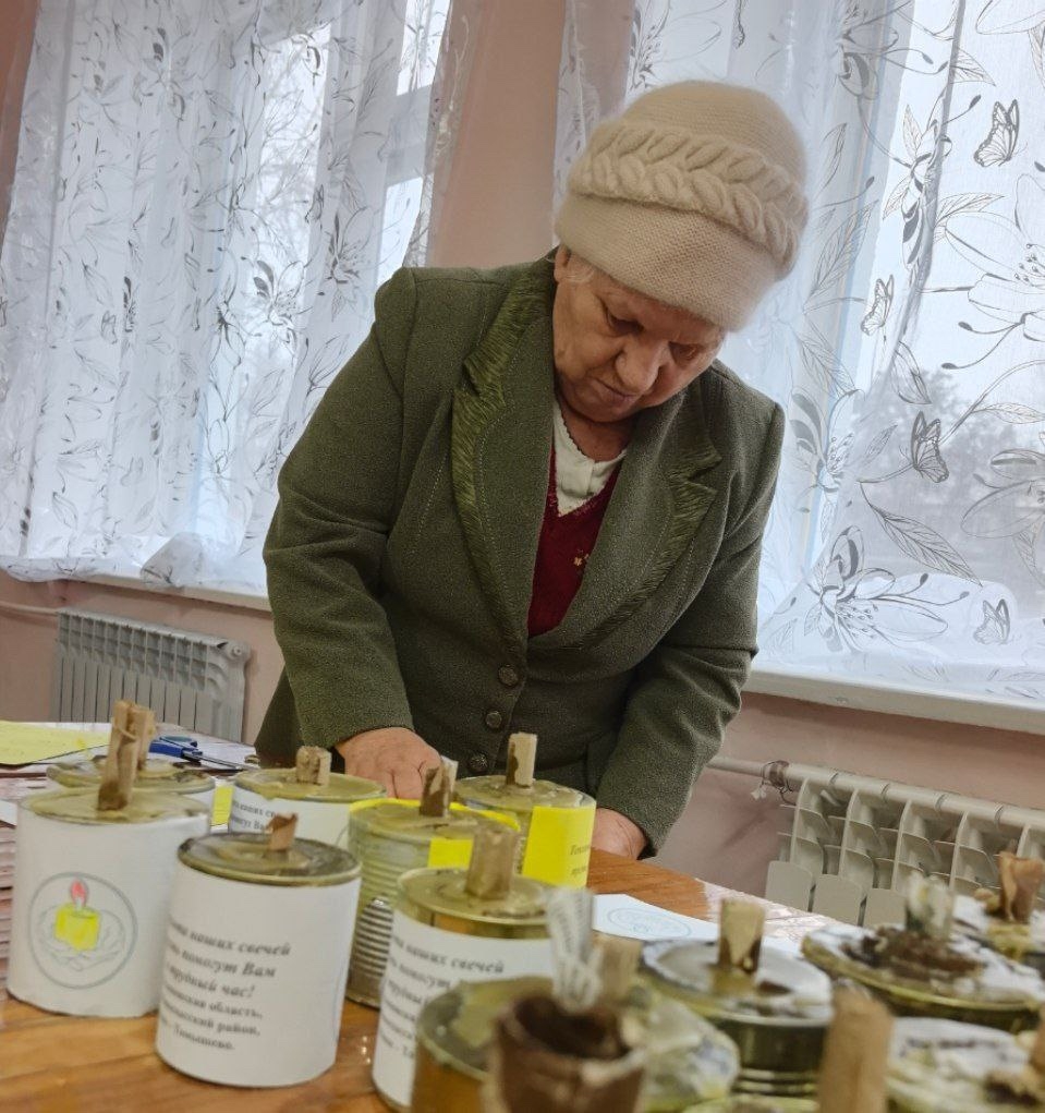 Юлия Николаевна застала подруг по женскому движения за работой: плетением маскировочных сетей и изготовлением окопных свечей. Волонтерское дело здесь организовано четко. Под руководством Светланы Викторовны Потаповой – администратора села, библиотекаря Новотомышевской библиотеки и председателя местного женсовета - сельчанки трудятся не покладая рук.