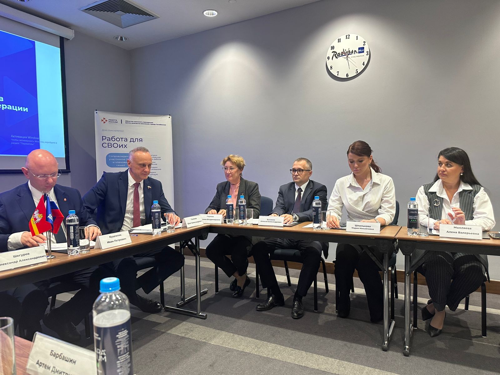 7 октября в Челябинске во время проведения «Ярмарки вакансий-2025» состоялось очередное заседание клуба «Работа для СВОих». В нём приняли участие первый заместитель Губернатора Челябинской области Иван Куцевляк, депутат Государственной Думы ФС РФ Олег Голиков, начальник Главного управления по труду и занятости Челябинской области Александр Шегуров, ветераны СВО, представители общественных организаций, в их числе - исполнительный директор регионального отделения Союза женщин России Евгения Глухова.