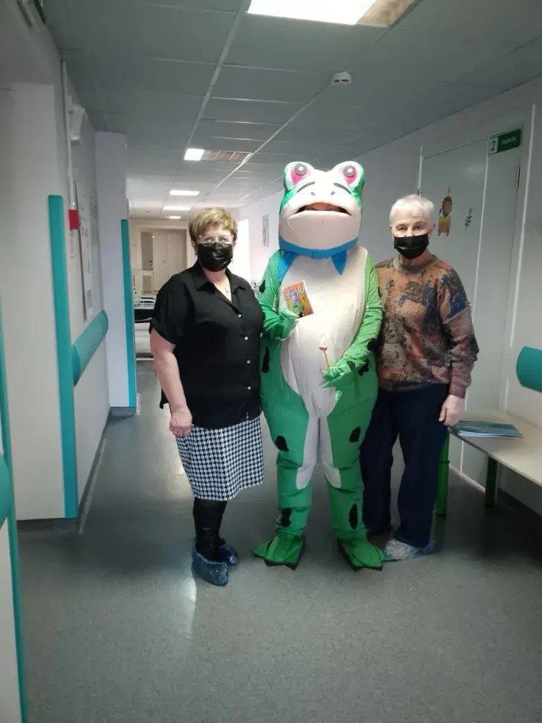 А ростовая кукла, веселый лягушонок, подняла настроение ребятишкам и их родителям.